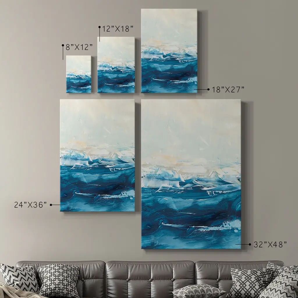 Wave after Wave II Premium Gallery Wrapped Canvas - Ready to Hang A premium hand stretched gallery wrapped canvas print created to last. Featuring a beveled a solid wood stretcher bar, each piece comes ready to hand 6 SIZES AVAILABLE 8''X12'' - Overall Size 12''X18'' - Overall Size 18''X27'' - Overall Size 24''x36'' - Overall Size 32''x48'' - Overall Size 40''x60'' - Overall Size Each piece is made to order. Built to Last Each piece comes ready to hang Solid wood stretcher Fade and Water resistant Made domestically