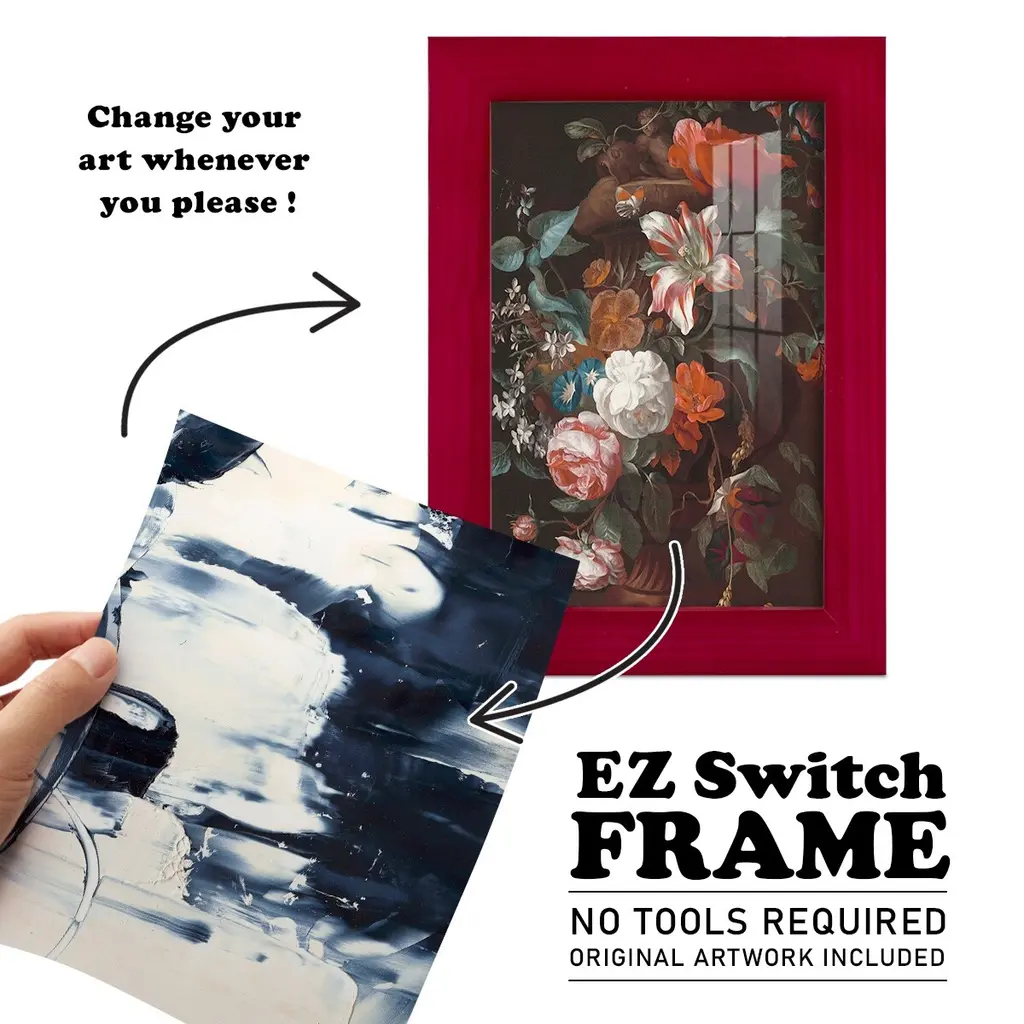 Wave Rider II -EZ SWITCH Framed Print w/glass-Cherry Red A delightful, framed print. Featuring a solid wood frame with real wood glass. This premium print is giclee quality. In addition, every frame features a removable back and table top stand. This allows you to change your art in the future or to just stand the art on a table for a new look. We are sure you'll enjoy our new series of EZ SWITCH Framed Art. Solid Wood Frame Real Glass Removable / Replaceable Art Built in Tabletop Stand Sizes range from 4x6 up to 12x15 - buy just one or pair them up as sets as you see fit.