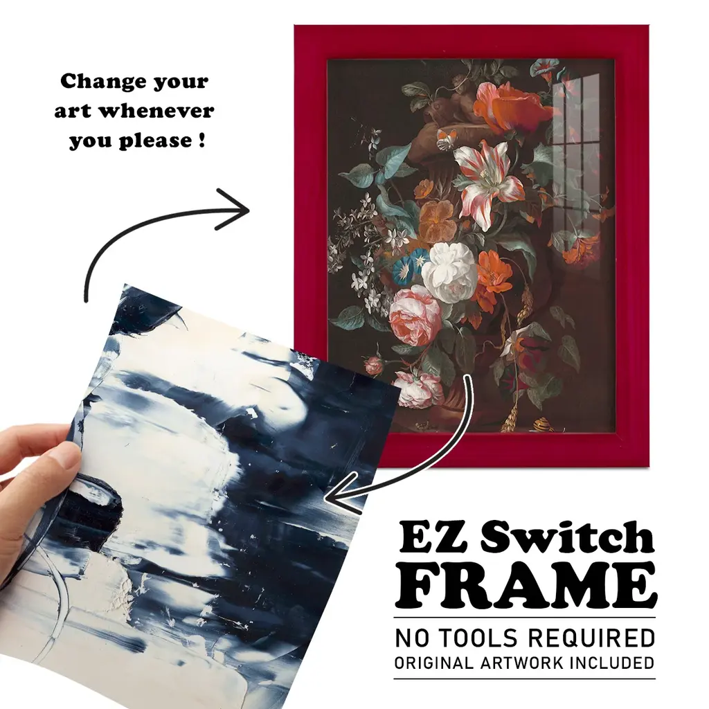 Wave Rider II -EZ SWITCH Framed Print w/glass-Cherry Red A delightful, framed print. Featuring a solid wood frame with real wood glass. This premium print is giclee quality. In addition, every frame features a removable back and table top stand. This allows you to change your art in the future or to just stand the art on a table for a new look. We are sure you'll enjoy our new series of EZ SWITCH Framed Art. Solid Wood Frame Real Glass Removable / Replaceable Art Built in Tabletop Stand Sizes range from 4x6 up to 12x15 - buy just one or pair them up as sets as you see fit.