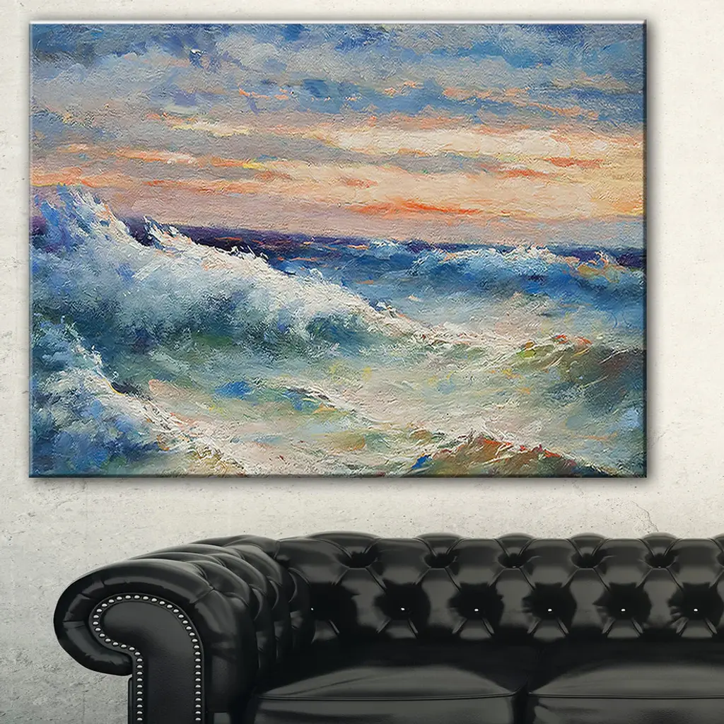 The Waves During Storm canvas art print is sure to make an impression on anyone who sees it. This artwork is gallery wrapped around a 1-inch solid wood frame and arrives carefully packaged and entirely ready to hang on the wall. Design Art only uses the highest resolution and pigments to ensure a crisp colorful print that is never faded or pixelated. This artwork is sure to be a conversation starter in any home or office.