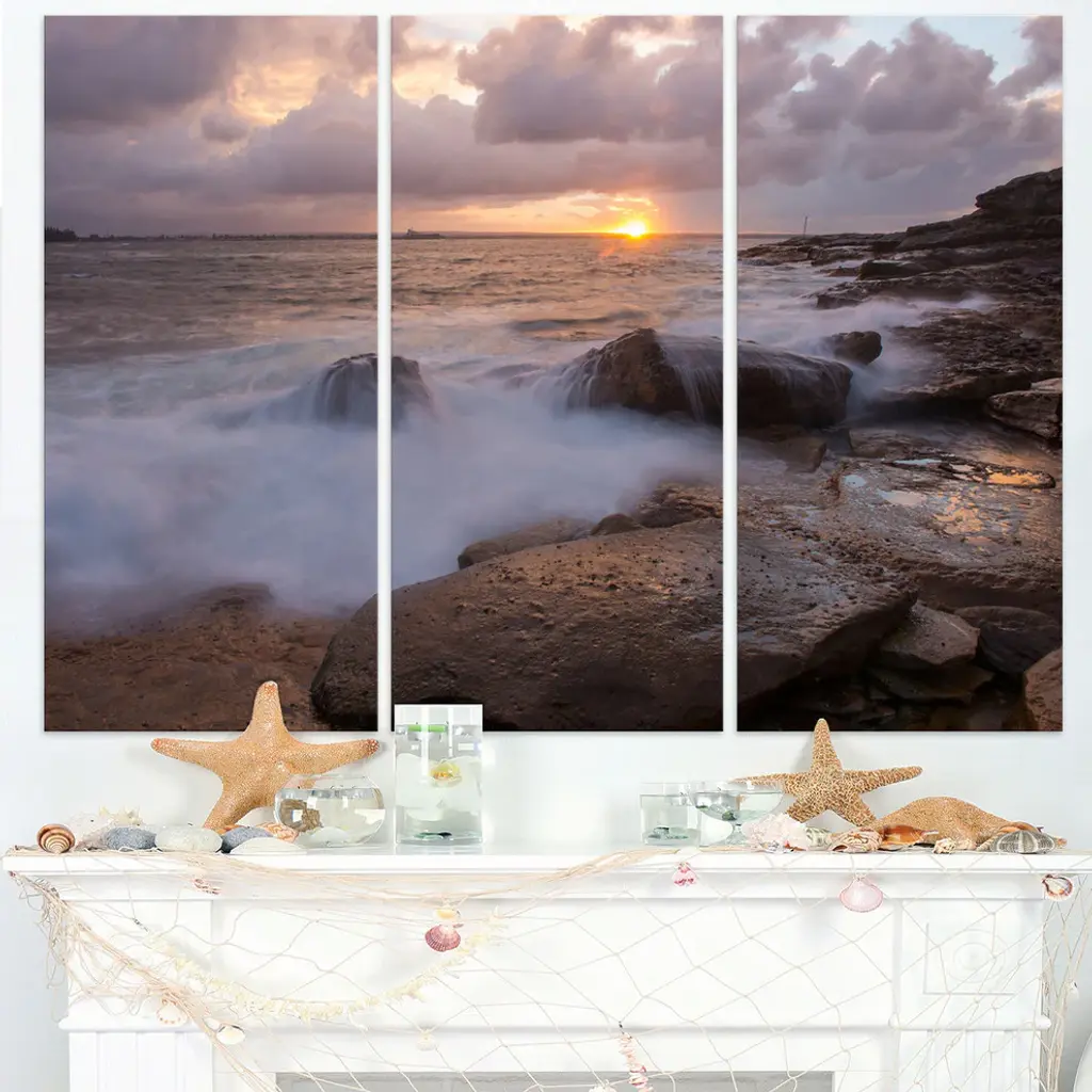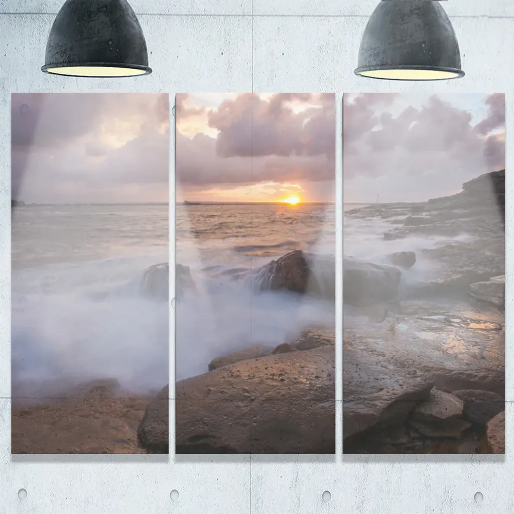 "Waves Hitting Rocks Australia Coastline" Metal Wall Art, 3 Panels, 36"x28"