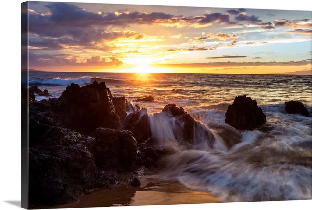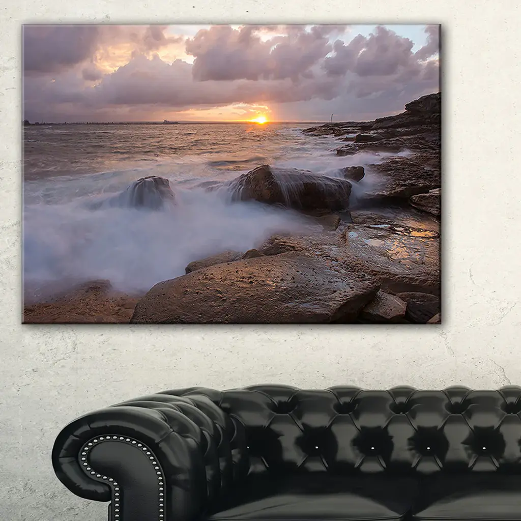 "Waves Hitting Rocks In Australia Coastline" Canvas Print32"x16"