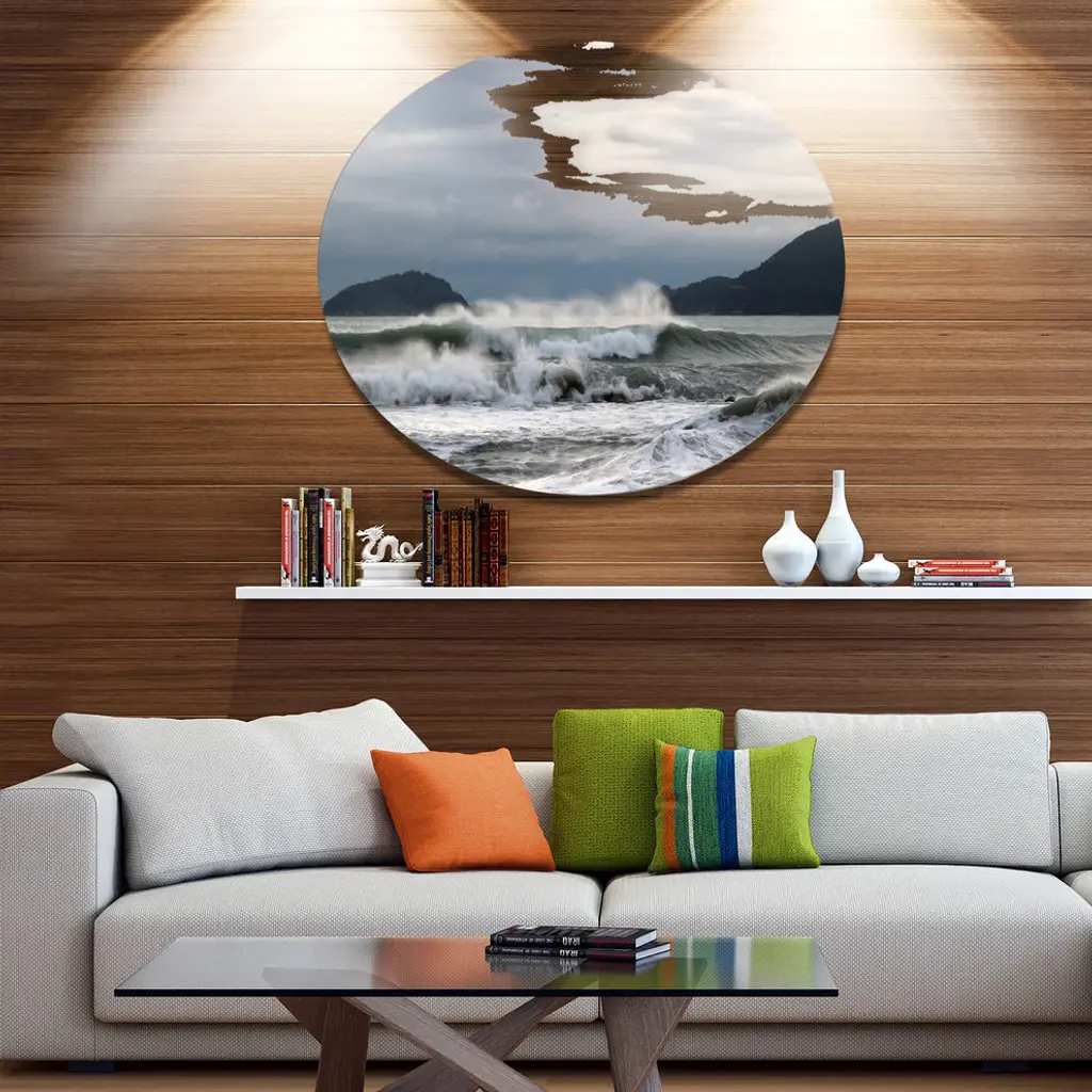 Bring Contemporary Abstraction to your home with this large Circle Metal wall art. This Waves in Lerici Beach Italy Metal Artwork makes it the focal point of any room or office. - White Gloss Coating ensures colors are extra vibrant with light reflection.- Aluminum grade Sheet Metal with 1 inch mounting frame on the back giving the illusion that the artwork is floating on the wall..- Mounting Brackets are included along with instructions.- High Quality Digital images are created directly into a glossy aluminum panel producing a stunning and captivating print into the glossy finish of the metal.- Water, Fire and Scratch resistant HD Aluminum panels.- Looks better than any photo paper and guaranteed to last at least 20 years- Easy to clean with a microfiber cloth. Colors are far superior to regular Canvas Art. - Easy to Hang