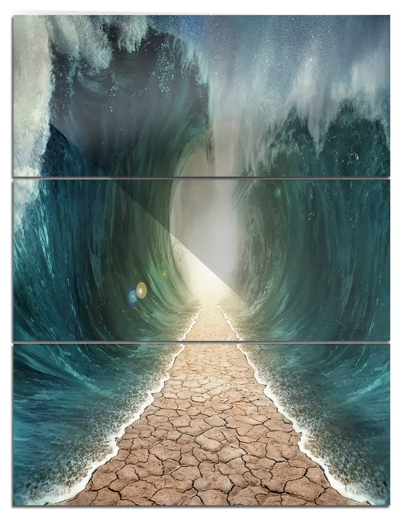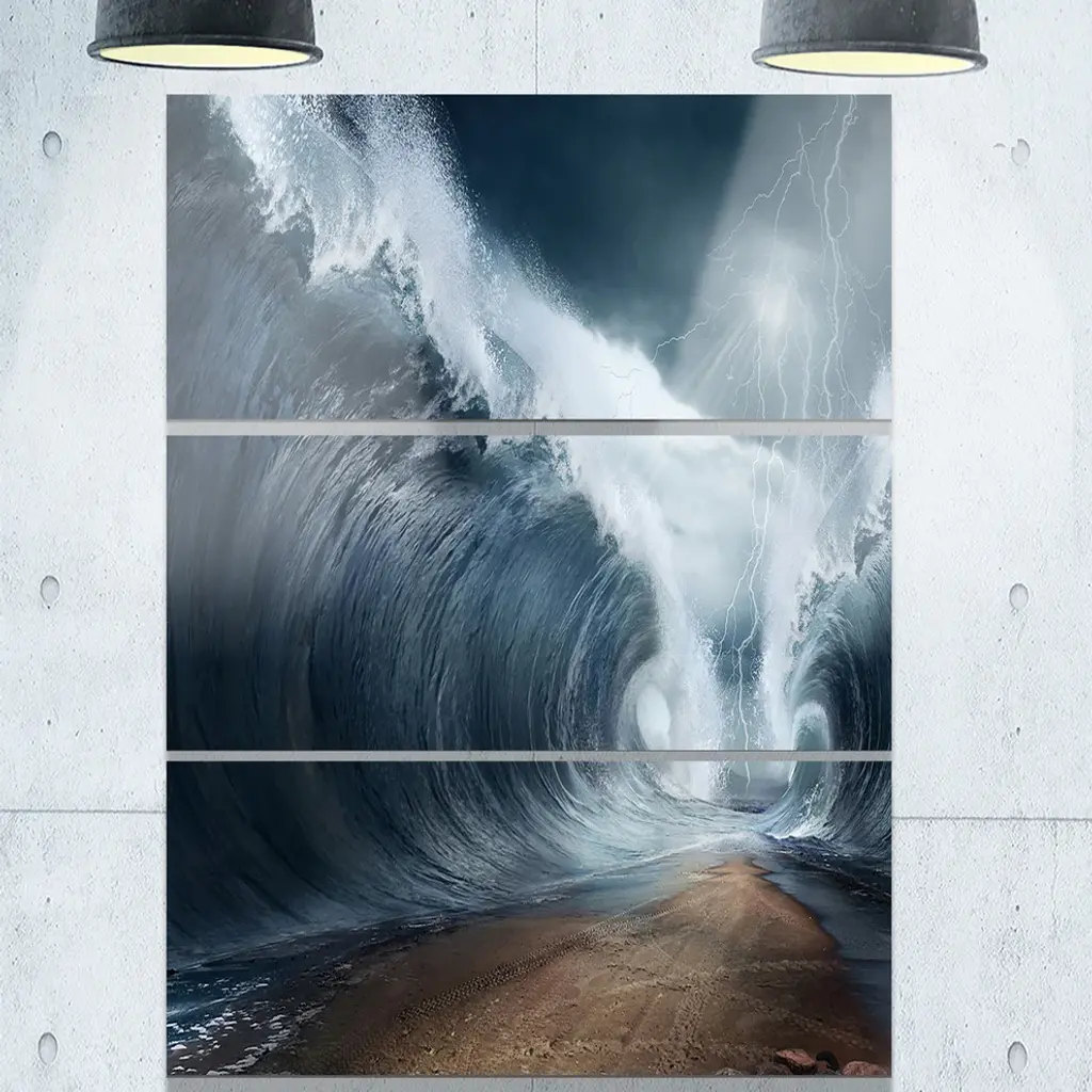 "Waves Over The Parted Sea Path" Metal Wall Art, 3 Panels, 28"x36"
