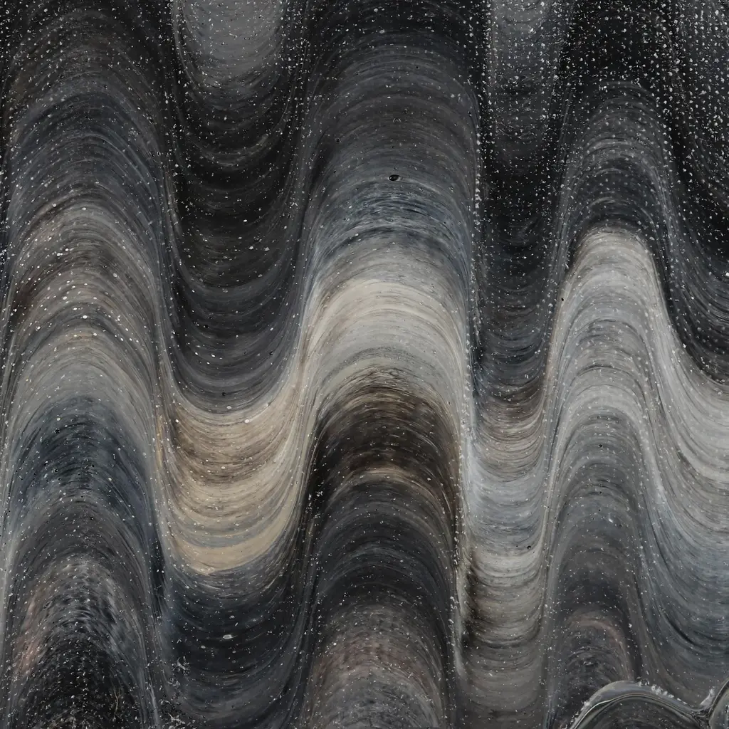 Indian artist Preeti Gupta creates an abstract painting that mesmerizes in its design. Using grey acrylic with a touch of salmon pink, the artist paints tight waves that undulate across the canvas with a hypnotizing effect.