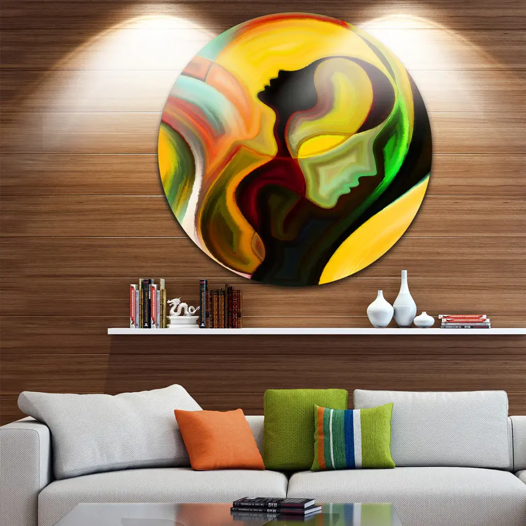 Bring Contemporary Abstraction to your home with this large Circle Metal wall art. This Way of Parenting Metal Artwork makes it the focal point of any room or office. - White Gloss Coating ensures colors are extra vibrant with light reflection.- Aluminum grade Sheet Metal with 1 inch mounting frame on the back giving the illusion that the artwork is floating on the wall..- Mounting Brackets are included along with instructions.- High Quality Digital images are created directly into a glossy aluminum panel producing a stunning and captivating print into the glossy finish of the metal.- Water, Fire and Scratch resistant HD Aluminum panels.- Looks better than any photo paper and guaranteed to last at least 20 years- Easy to clean with a microfiber cloth. Colors are far superior to regular Canvas Art. - Easy to Hang