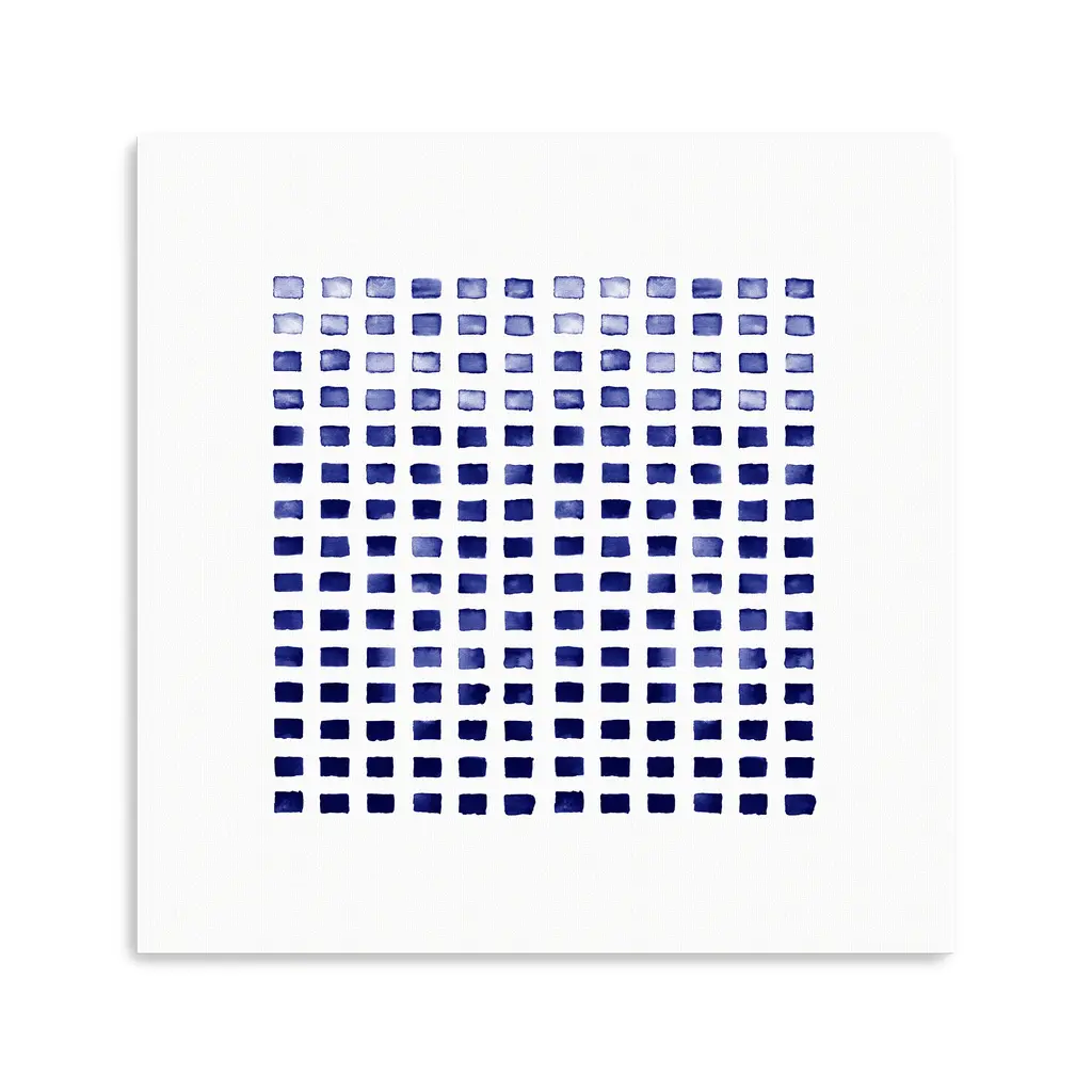 Elevate your decor with this stunning "Indigo Blocks" blue abstract pattern canvas art by Danushka Abeygoda. Featuring a dynamic interplay of various blue tones, this artwork adds a touch of modern sophistication to any space. The intricate patterns and fluid lines create a captivating visual experience, making it an ideal centerpiece for both contemporary and classic interiors. Available in black frame, dark walnut frame, oak frame, or as a wrapped canvas. Our Gallery Wrap Canvas Prints are proudly assembled with high quality materials in California, USA. Each piece is printed on a thick, archival grade canvas using Giclee technology. It is then hand-stretched by our experienced artisans over solid wood bars, which will not warp over time. The final product is a piece personally crafted for you to confidently display on your wall. Care and Assembly: Ensure that the location of your piece has little to no exposure to heat, sunlight, and moisture. Wipe clean, only if needed. Each piece includes a sawtooth hanger to hang on your wall horizontally.