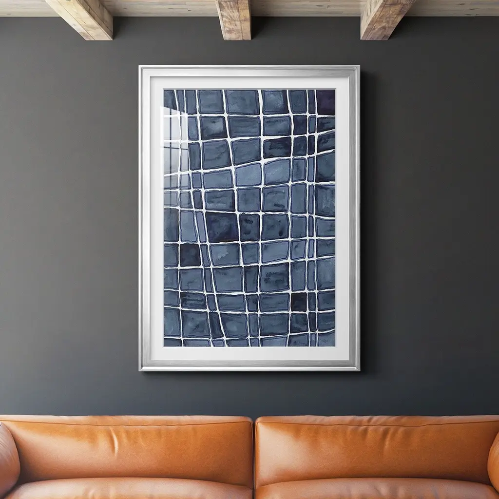 Wc Blocks Indigo Canvas Giclee - Framed / Dark Walnut / 30x30