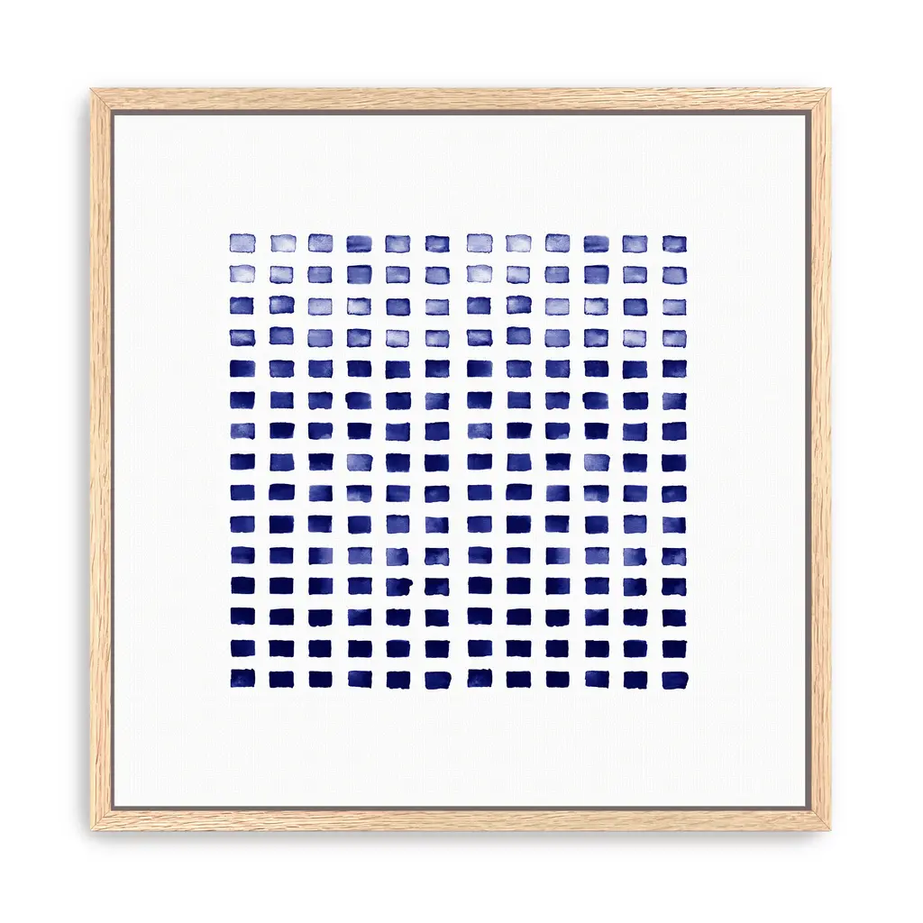 Elevate your decor with this stunning "Indigo Blocks" blue abstract pattern canvas art by Danushka Abeygoda. Featuring a dynamic interplay of various blue tones, this artwork adds a touch of modern sophistication to any space. The intricate patterns and fluid lines create a captivating visual experience, making it an ideal centerpiece for both contemporary and classic interiors. Available in black frame, dark walnut frame, oak frame, or as a wrapped canvas. Our Gallery Wrap Canvas Prints are proudly assembled with high quality materials in California, USA. Each piece is printed on a thick, archival grade canvas using Giclee technology. It is then hand-stretched by our experienced artisans over solid wood bars, which will not warp over time. The final product is a piece personally crafted for you to confidently display on your wall. Care and Assembly: Ensure that the location of your piece has little to no exposure to heat, sunlight, and moisture. Wipe clean, only if needed. Each piece includes a sawtooth hanger to hang on your wall horizontally.