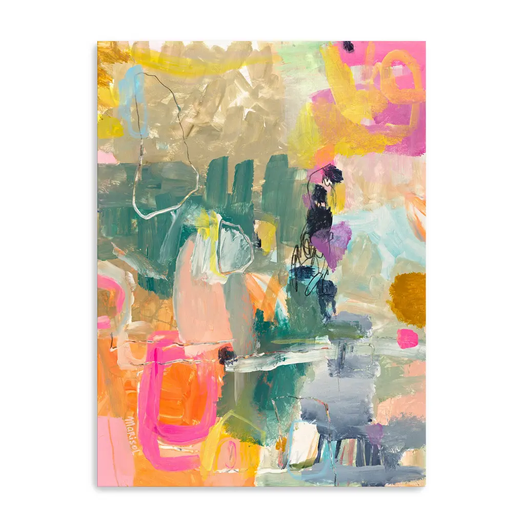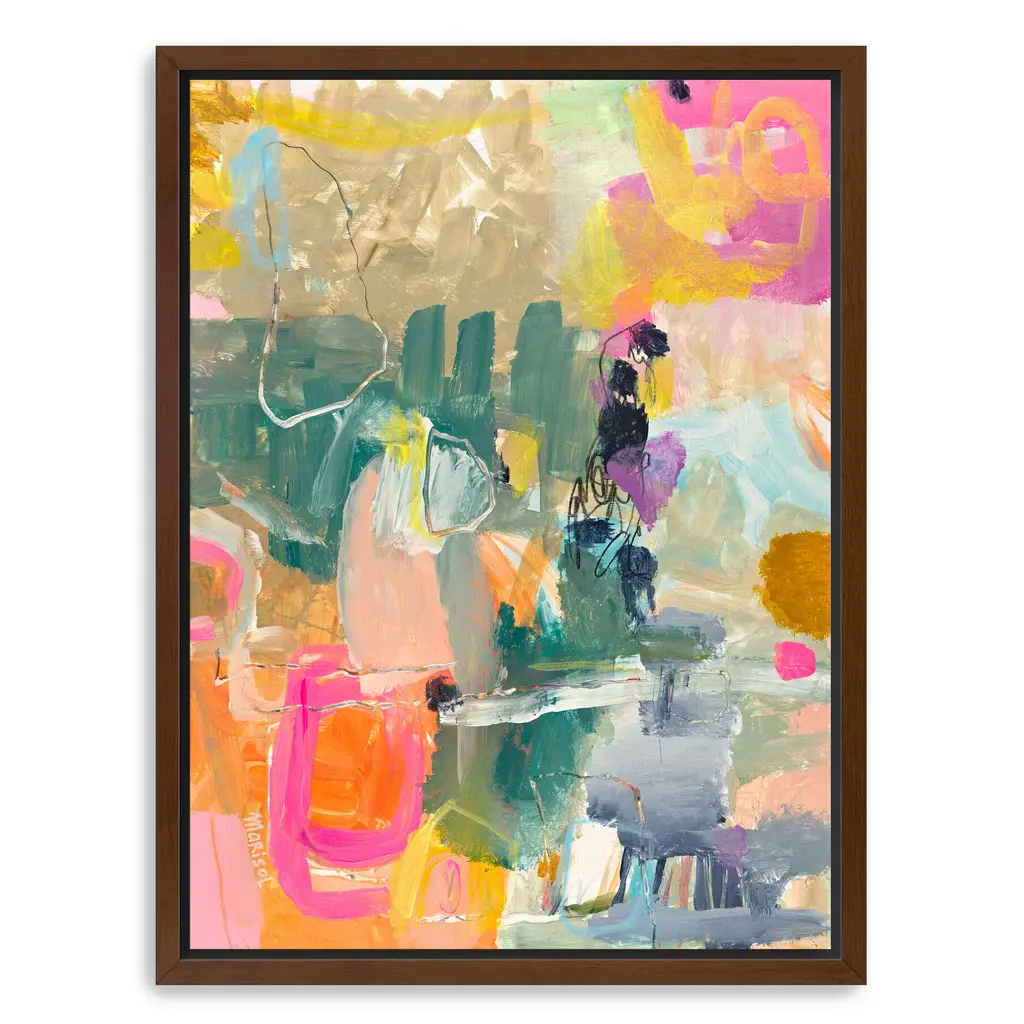 Enhance your living space with this captivating "Weekend Plans" canvas art by Marisol Evora. Featuring a rich palette of green tones and diverse elements, this artwork adds depth and intrigue to any room. The dynamic composition and vibrant hues create a striking visual experience, making it a perfect statement piece for both contemporary and classic interiors. Available in black frame, dark walnut frame, oak frame, or as a wrapped canvas. Our Gallery Wrap Canvas Prints are proudly assembled with high quality materials in California, USA. Each piece is printed on a thick, archival grade canvas using Giclee technology. It is then hand-stretched by our experienced artisans over solid wood bars, which will not warp over time. The final product is a piece personally crafted for you to confidently display on your wall. Care and Assembly: Ensure that the location of your piece has little to no exposure to heat, sunlight, and moisture. Wipe clean, only if needed. Each piece includes a sawtooth hanger to hang on your wall vertically.