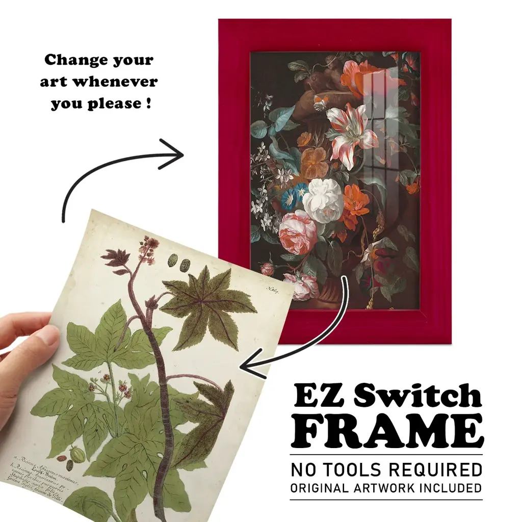 Weinmann Tropical Plants II -EZ SWITCH Framed Print w/glass-Cherry Red A delightful, framed print. Featuring a solid wood frame with real wood glass. This premium print is giclee quality. In addition, every frame features a removable back and table top stand. This allows you to change your art in the future or to just stand the art on a table for a new look. We are sure you'll enjoy our new series of EZ SWITCH Framed Art. Solid Wood Frame Real Glass Removable / Replaceable Art Built in Tabletop Stand Sizes range from 4x6 up to 12x15 - buy just one or pair them up as sets as you see fit.