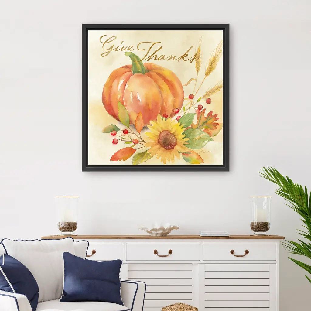 Welcome Fall I - Give Thanks Canvas Giclee - Framed / Black / 20x20