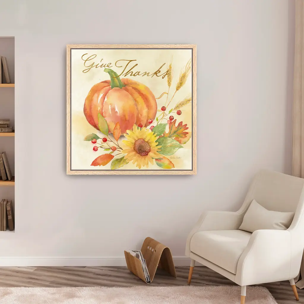 Welcome Fall I - Give Thanks Canvas Giclee - Framed / Dark Walnut / 30x30