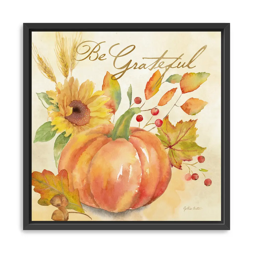 Welcome Fall Ii - Be Grateful Canvas Giclee - Framed / Black / 20x20