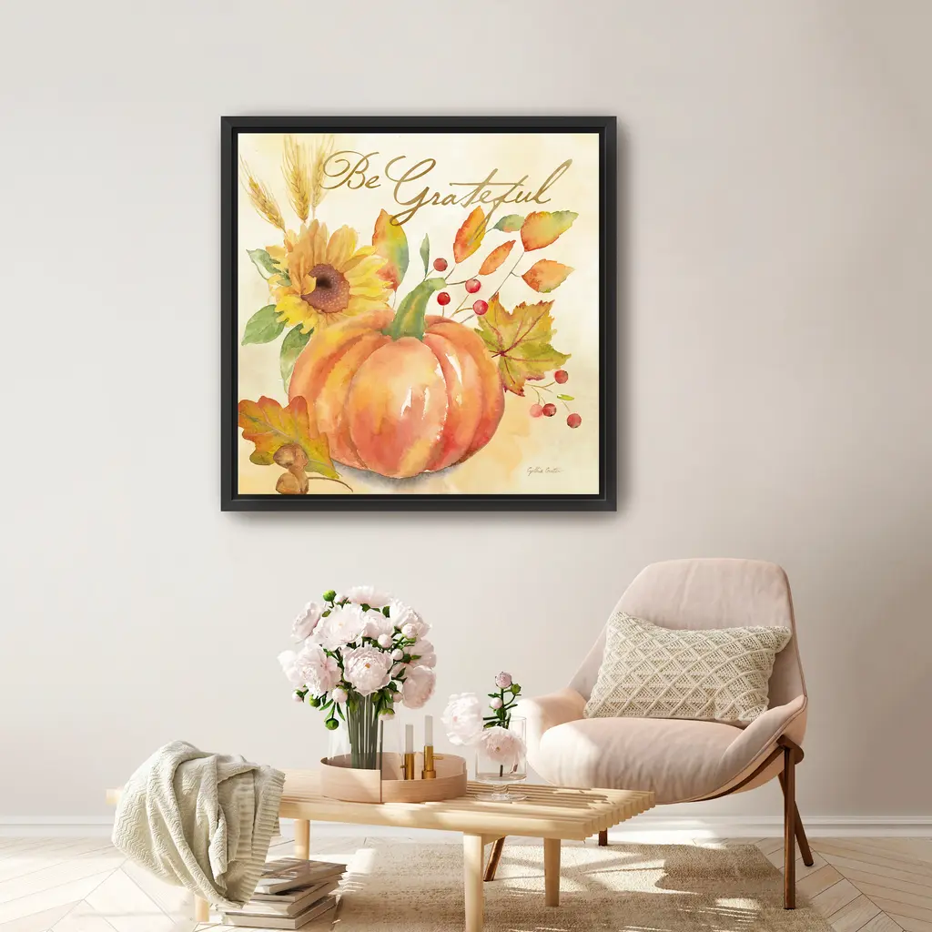 Welcome Fall Ii - Be Grateful Canvas Giclee - Framed / Black / 40x40