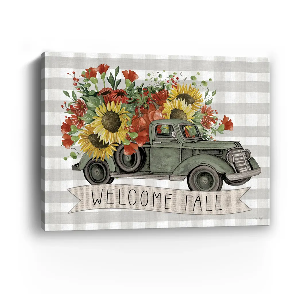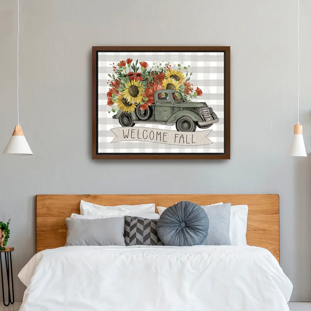 Welcome Fall Truck Canvas Giclee - Framed / Dark Walnut / 16x20