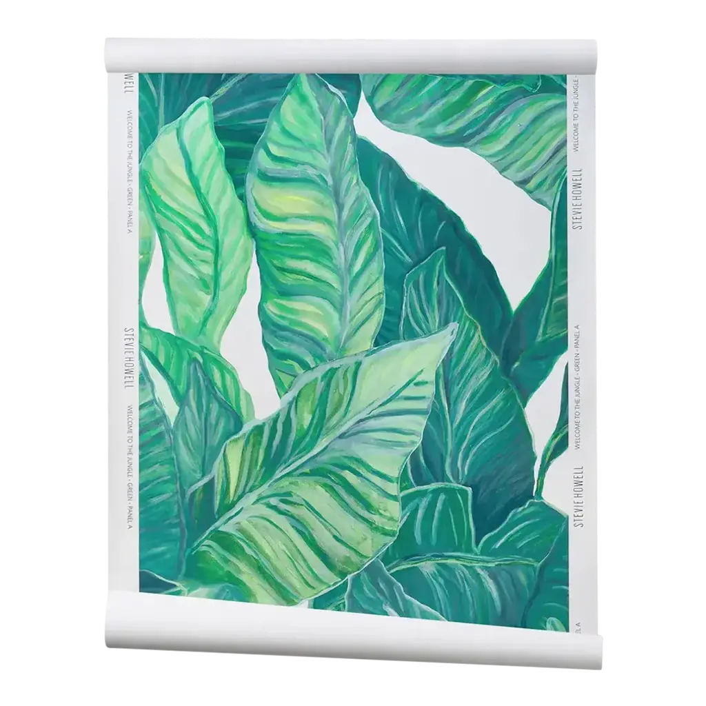 Featuring layered life-sized leaves of the bird of paradise, this large-scale botanical fabric print is a wild and immersive experience – like listening to the full-bore energy of the 1987 Guns N' Roses hit it is named after. Unlike the concrete jungle in the song, however, this jungle won't bring you to your na-na-na-knees, but uplift you with the beauty of nature. Our Welcome to the Jungle Green Fabric by the yard is printed with water-based pigment ink. 56% Linen | 44% Cotton Horizontal repeat: 53.5" Vertical repeat: 37.7" 54" wide fabric 1 yard minimum Swatches are 8.5" x 8.5" 2 week production time Spot clean or machine wash Made in the USA