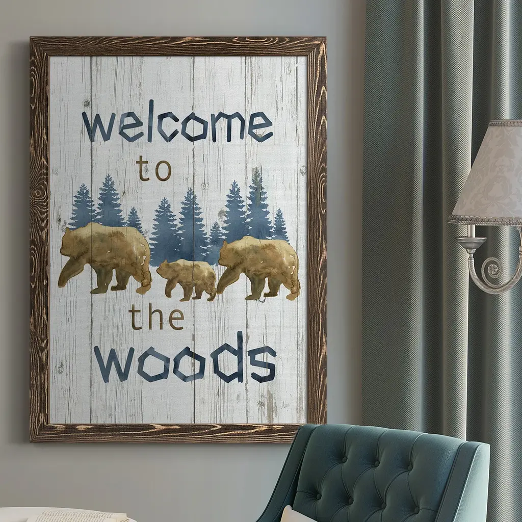 Welcome To The Woods-Premium Framed Canvas - Ready To Hang - 27.5x37.5 - Walnut
