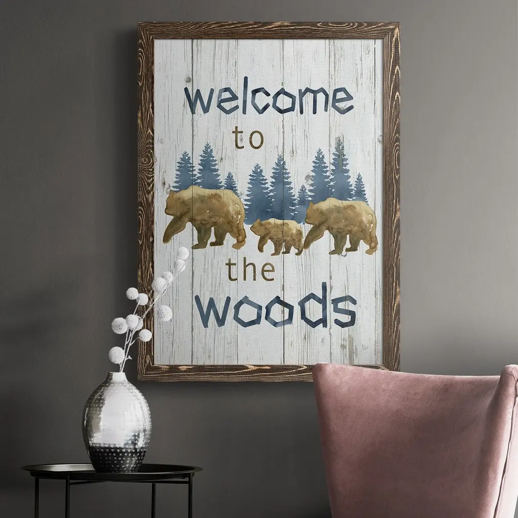Welcome To The Woods-Premium Framed Canvas - Ready To Hang - 31.5x43.5 - White