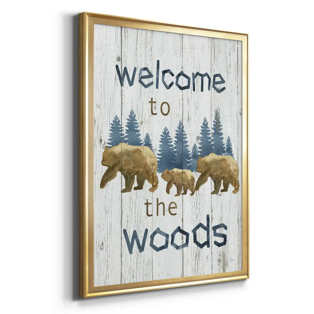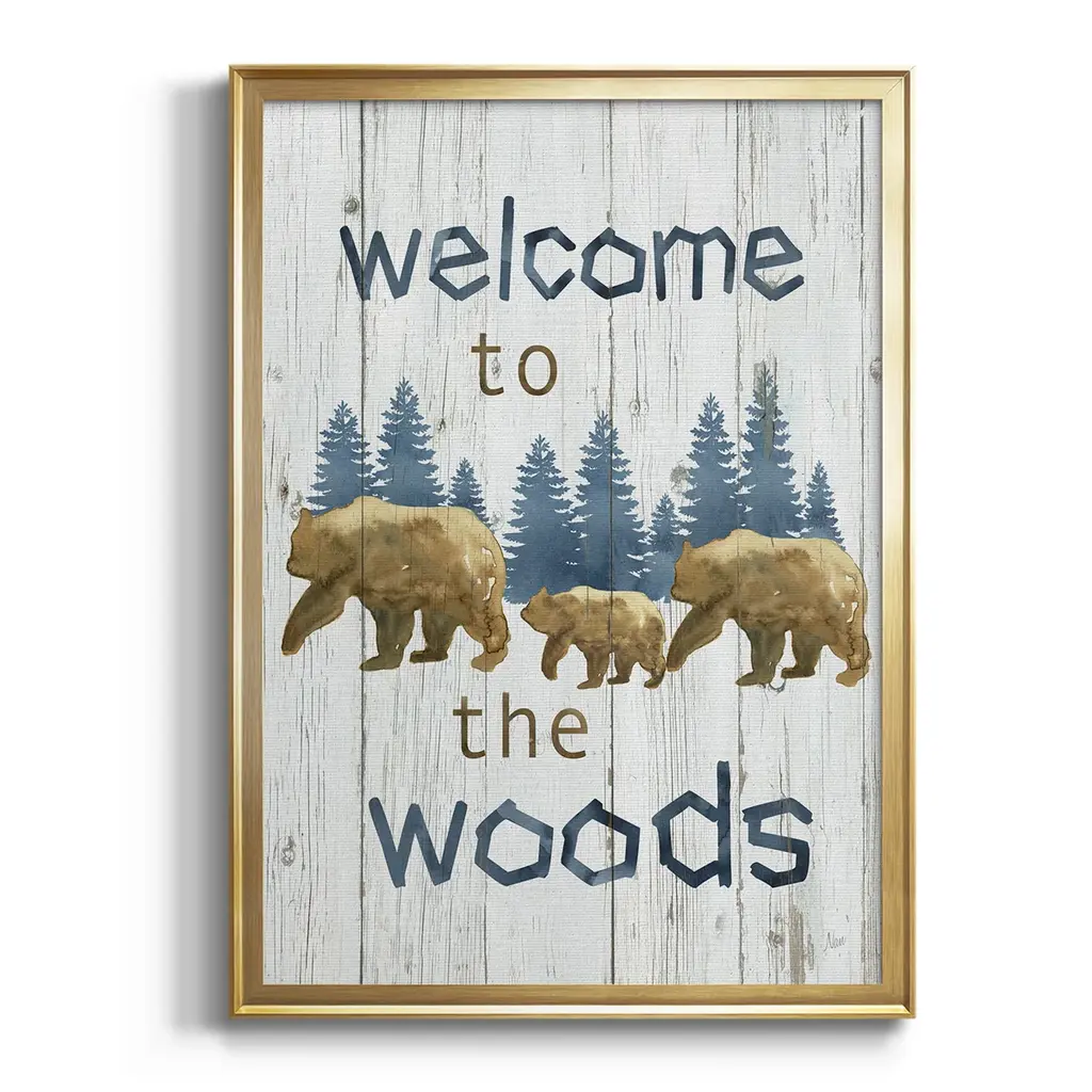 Welcome to the Woods Premium Framed Print - Ready to Hang A Premium Framed Print created to last. Framed in distressed wood and available in an array of sizes and colors Featuring a beveled a solid wood stretcher bar, each piece comes ready to hand 4 SIZES AVAILABLE 30.5''X42.5'' - Overall Size 26.5'X36.5'' - Overall Size 22.5''x30.5'' - Overall Size 18.5''x24.5'' - Overall Size Each piece is made to order. Each piece comes with hanging hardware. Made in the USA Ready to Hang