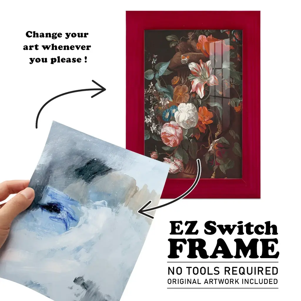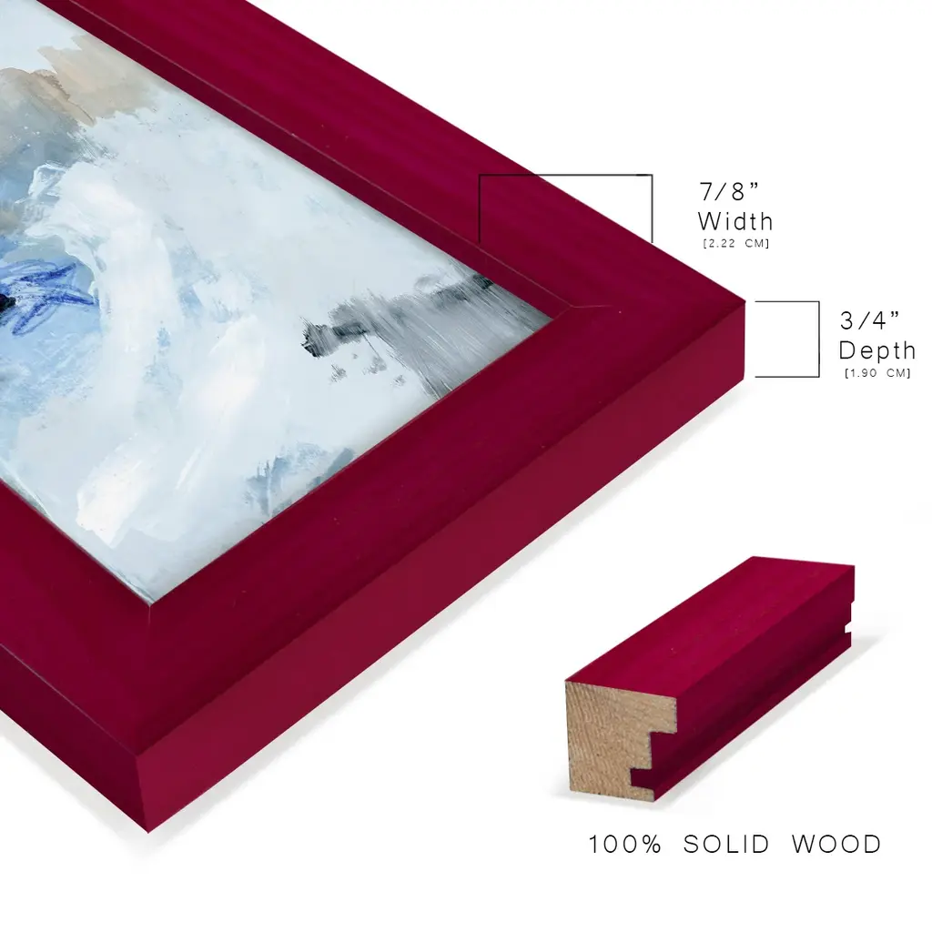 Welle I -EZ SWITCH Framed Print w/glass-Cherry Red A delightful, framed print. Featuring a solid wood frame with real wood glass. This premium print is giclee quality. In addition, every frame features a removable back and table top stand. This allows you to change your art in the future or to just stand the art on a table for a new look. We are sure you'll enjoy our new series of EZ SWITCH Framed Art. Solid Wood Frame Real Glass Removable / Replaceable Art Built in Tabletop Stand Sizes range from 4x6 up to 12x15 - buy just one or pair them up as sets as you see fit.