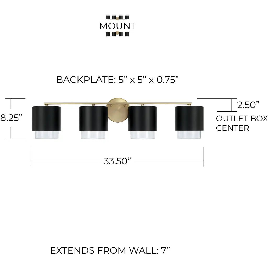 Weller 4 Light 33.5 Inch Matte Brass And Black Vanity Light Wall Light