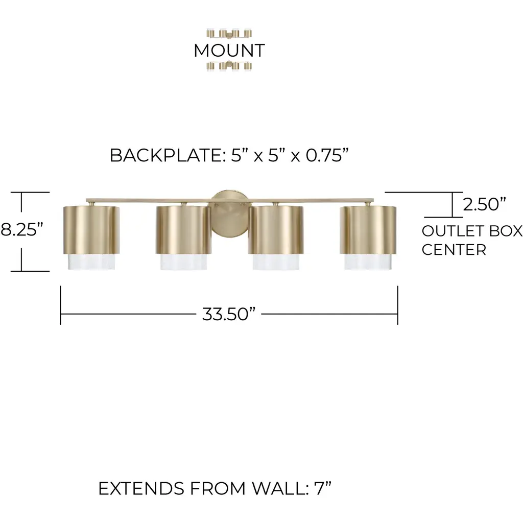 Weller 4 Light 33.5 Inch Matte Brass Vanity Light Wall Light