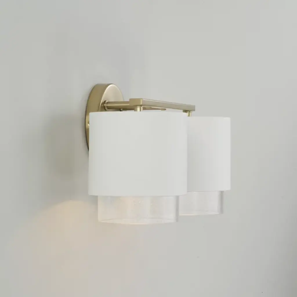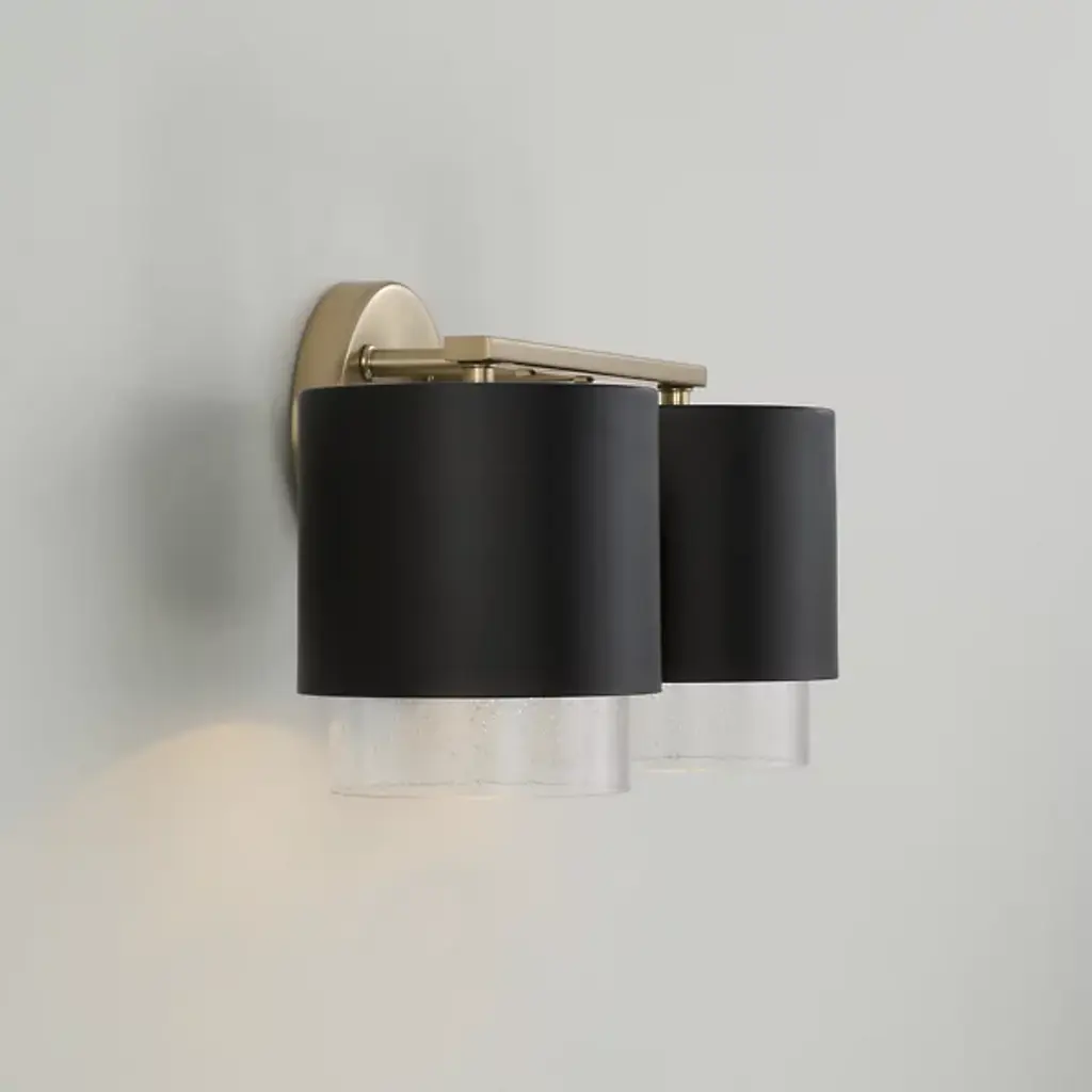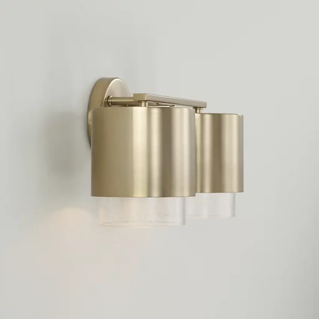 The Weller Vanity Light from Capital Lighting redefines bathroom illumination with its sleek, modern design. Two cylindrical shades create a bold geometric statement, while seeded glass diffuses light for a flattering glow - perfect for your morning routine or evening wind-down. Ideal for modern minimalists and design enthusiasts alike, the Weller Vanity Light transforms your bathroom into a spa-like retreat. Its versatile aesthetic pairs well with a variety of decor styles, from industrial chic to Scandinavian simplicity.
