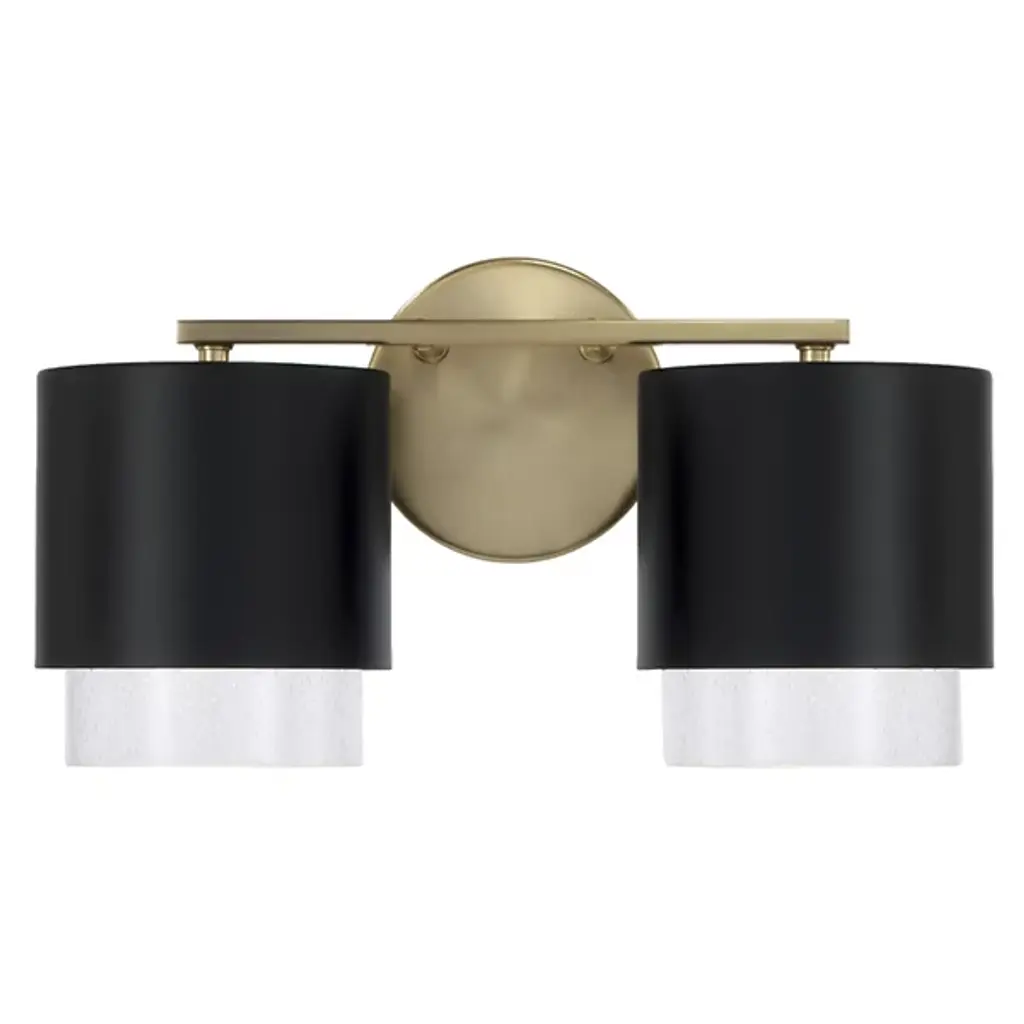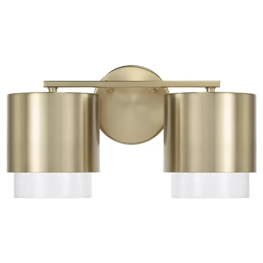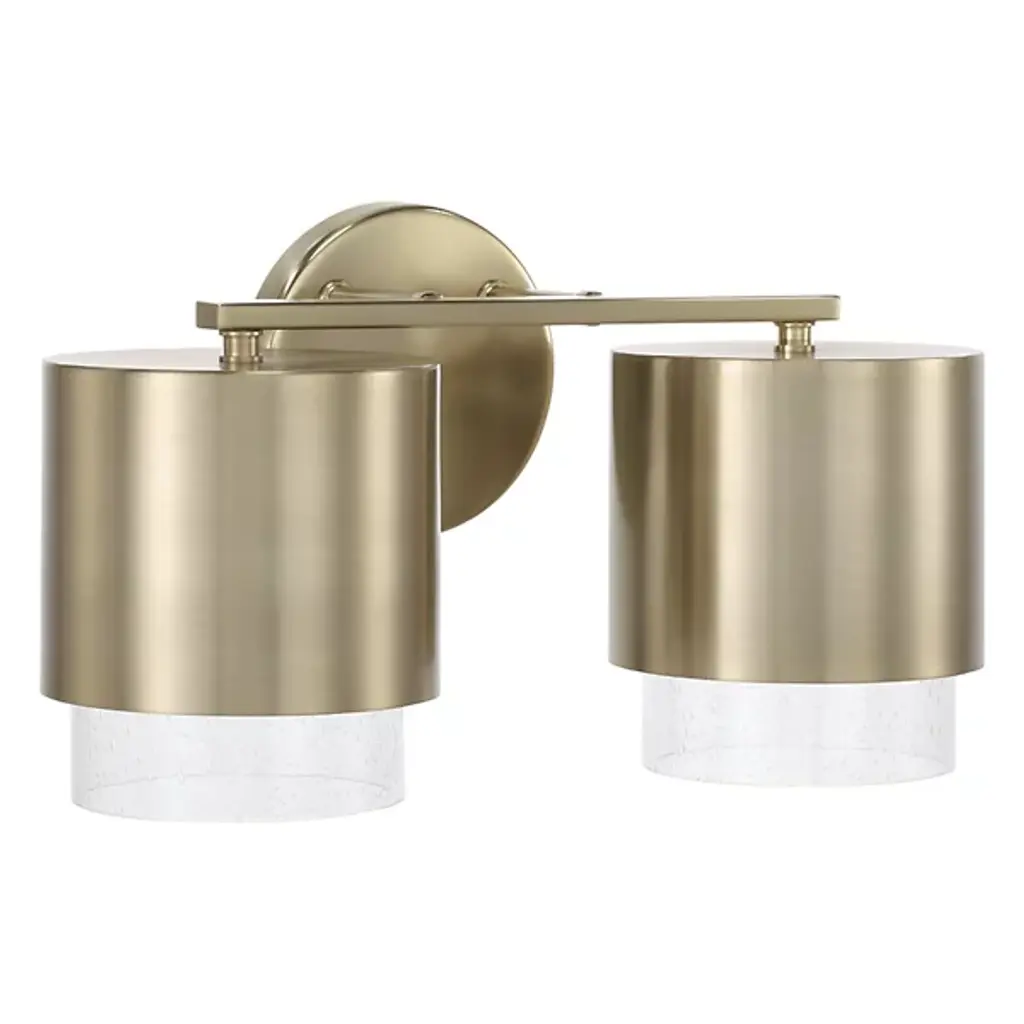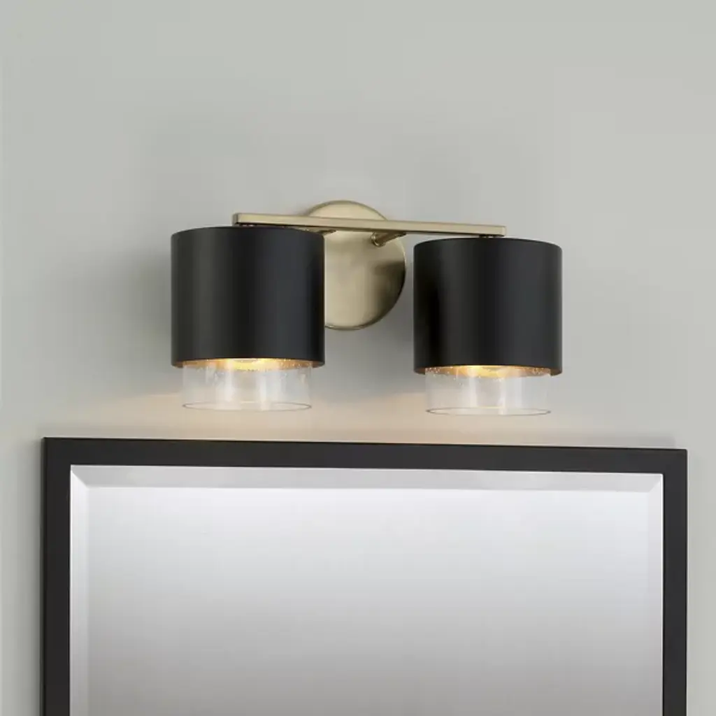 The Weller Vanity Light from Capital Lighting redefines bathroom illumination with its sleek, modern design. Two cylindrical shades create a bold geometric statement, while seeded glass diffuses light for a flattering glow - perfect for your morning routine or evening wind-down. Ideal for modern minimalists and design enthusiasts alike, the Weller Vanity Light transforms your bathroom into a spa-like retreat. Its versatile aesthetic pairs well with a variety of decor styles, from industrial chic to Scandinavian simplicity.