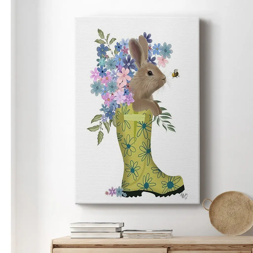 Welly Bunny And Bee Premium Gallery Wrapped Canvas - Ready To Hang - 24x36