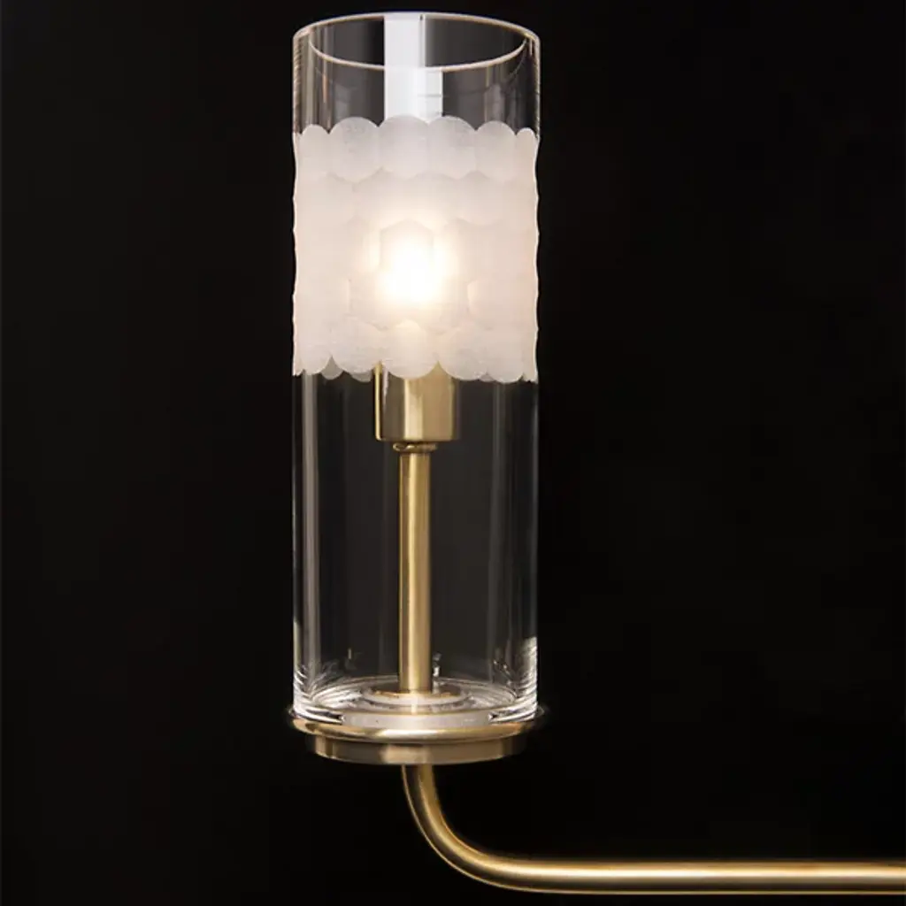 Cultivate a hive mentality with the Hudson Valley Lighting Wentworth Wall Sconce. It features a row of “candleholders” composed of Clear Mouth-Blown Glass cylinders adorned with a signature hand-cut honeycomb pattern. The shades reveal the sleek metal candlestick below while the hexagonal texture obscures the bulb and diffuses the light. The result? An ambiance so soothing it may inspire you to wax poetic.