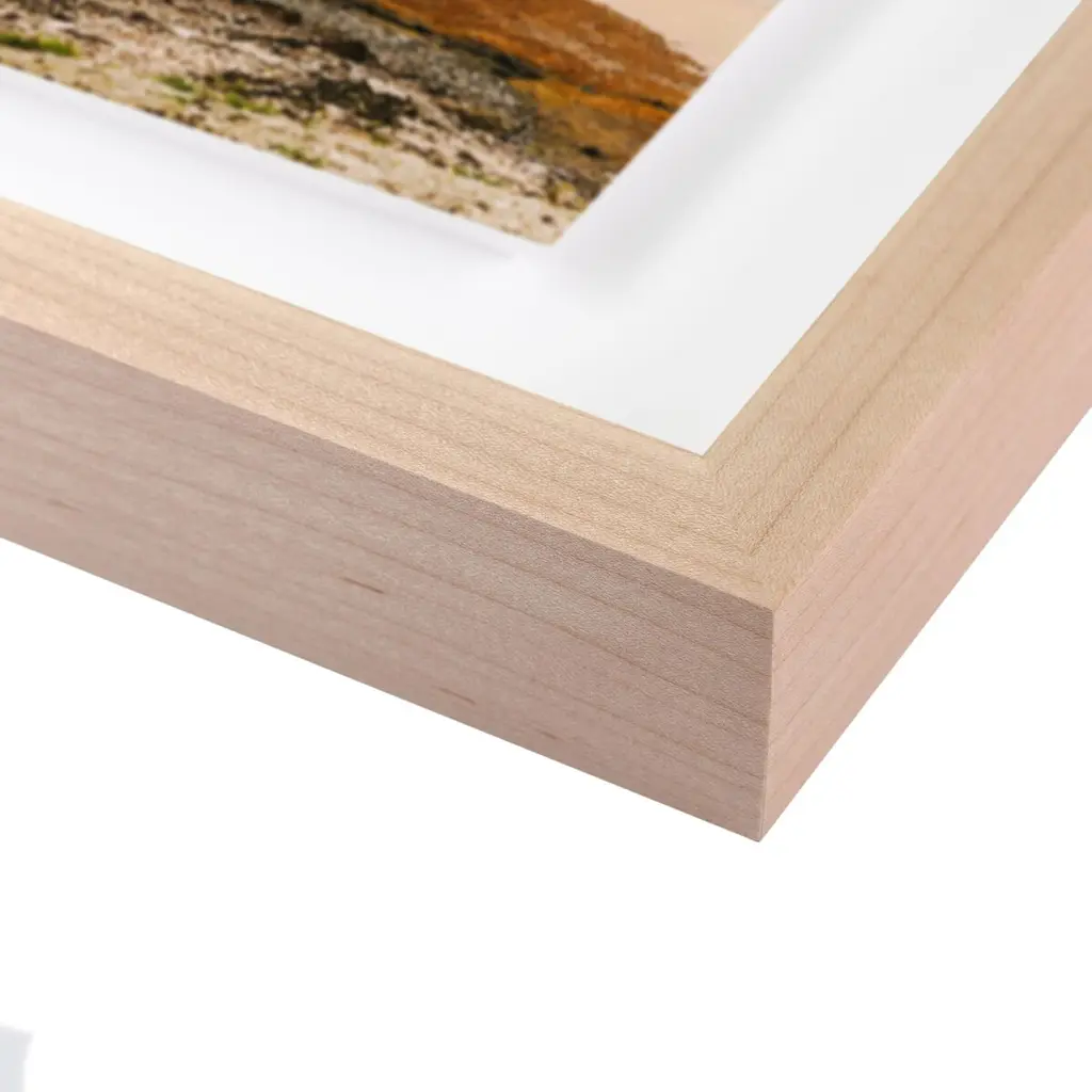 Fine art print on semi-gloss photo paper, float mounted in a hand painted 100% American maple frame with standard acrylic glazing and pre-installed hanging hardware. All orders are custom, handmade, and produced by highly skilled craftsmen with the utmost quality and care