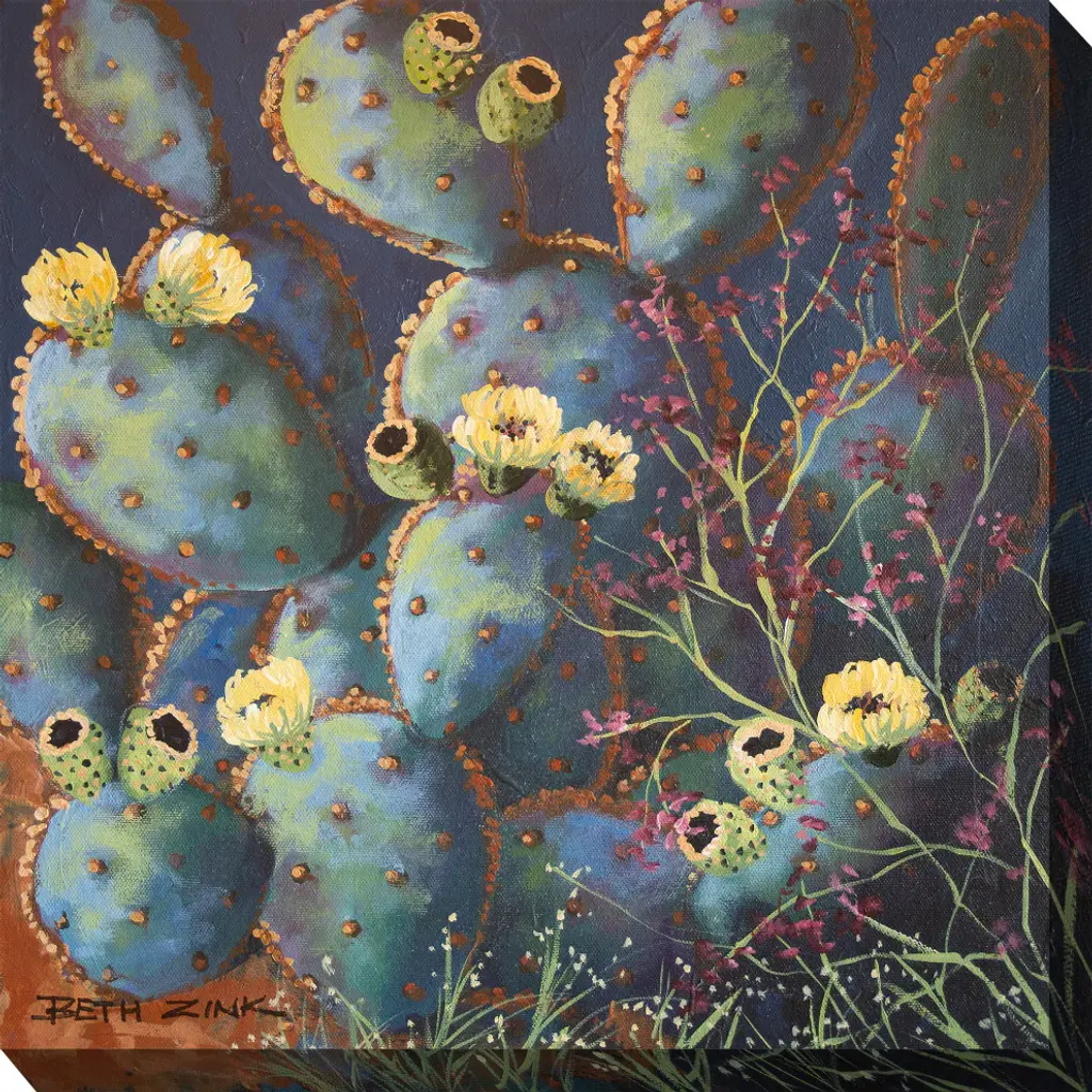 Transport yourself into nature with this stunning and vivid outdoor art piece. This unique and inspired artwork features bright, beautiful colors and is printed on canvas using giclée printing technology. Each piece is waterproof, UV protected, and gallery wrapped on vinyl stretcher bars, making it safe for the outdoors and keeping it protected from the elements. Hang this colorful, nature-inspired piece on your patio, porch or even a fence and watch as your outdoor living space is transformed.GicléeGiclée is the French word meaning "to spray or to squirt with a nozzle." The term "giclée print" connotes an elevation in printmaking technology. Images are generated from high resolution digital scans and printed with archival quality inks onto canvas. The giclée printing process provides better color accuracy than other means of reproduction. Another tremendous advantage of giclée printing is that digital images can be reproduced to almost any size and onto various media. The quality of the giclée print rivals more traditional methods and is commonly found in museums, art galleries, and photographic galleries.Wrap MethodThis is a method of stretching artist's canvas so that the canvas wraps around the sides onto stretcher bars and is secured to the back of the frame. The term gallery wrap refers to an image that appears on the sides of the frame as well as the front. The image on the sides is either a continuation or a reflection of the main image, or an otherwise fabricated element such as a solid color or colors derived from the adjacent image. This method of stretching and preparing a canvas allows a frameless presentation of the finished painting.Hanging SystemDesigned to withstand 60mph winds, each print includes a simple yet effective hardware for outdoor installation. The "hooks" can be screwed into a stone, stucco, brick, wood, or aluminum. Brackets affixed to the back of the image snap into place on then hooks. A template is included for ease of installation. Waterproof, UV protected and gallery wrapped on 1 1/2" vinyl stretcher bars with stainless steel staples. This outdoor Canvas Art can be placed in any outdoor location with direct exposure to the elements.