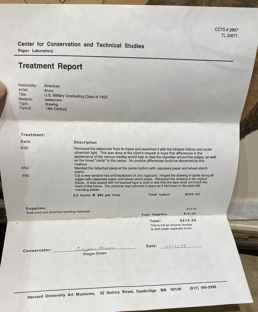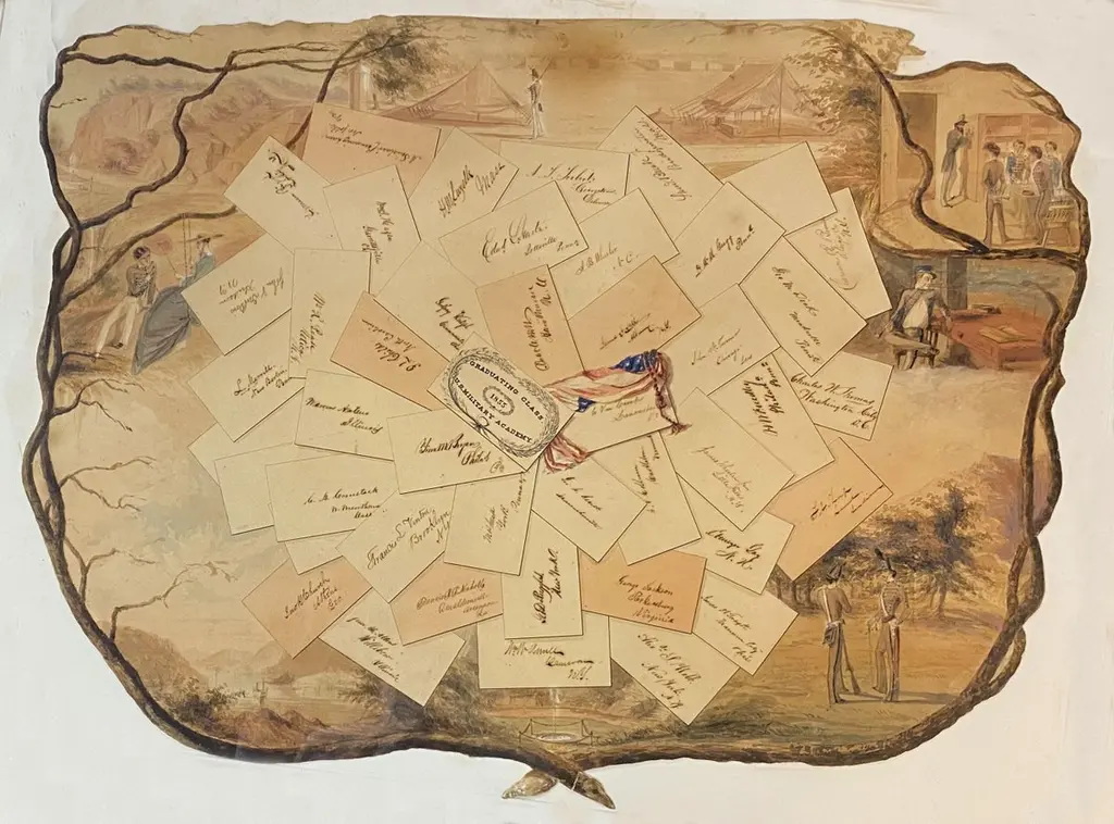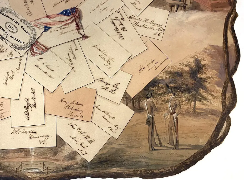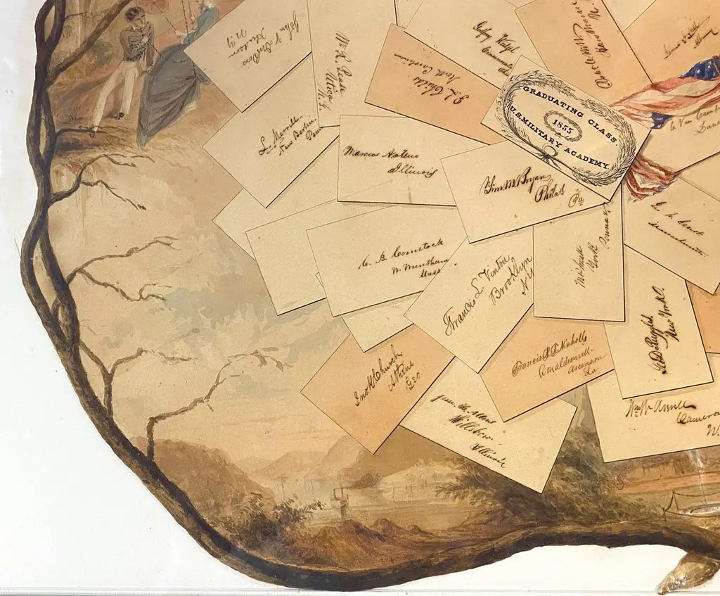 West Point Military Academy Trompe L’oeil Watercolor Graduating Class 1855