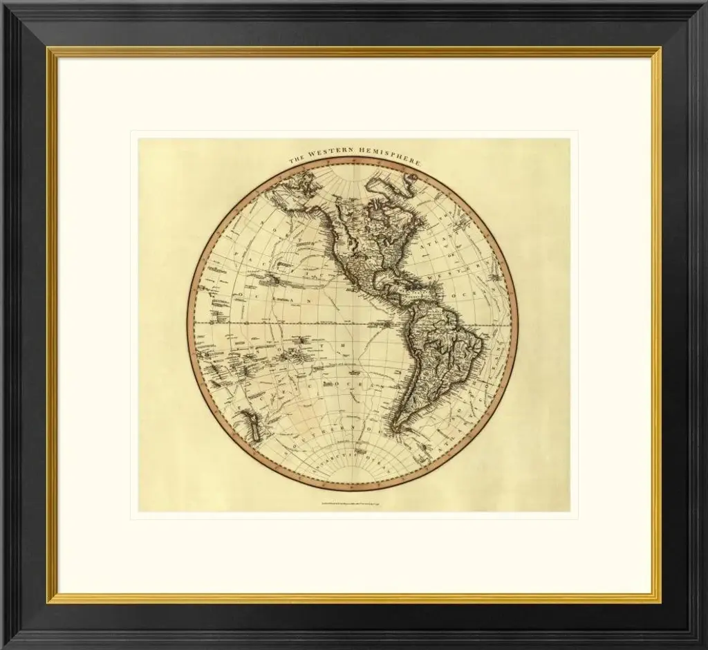 "Western Hemisphere, 1799" Framed Digital Print By John Cary, 26x24"