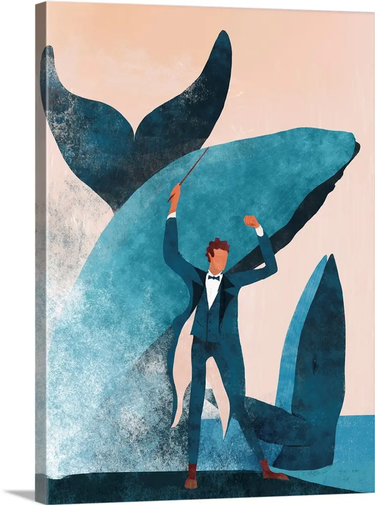 "Whale Song Blue Square" By Terry Fan, 12x12x1.5