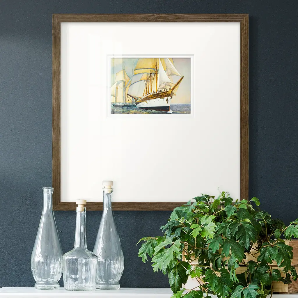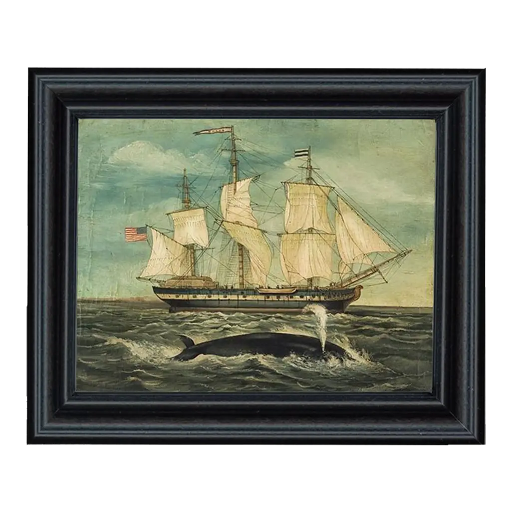 Whaling Ship With Whale Print Behind Glass In Black Wood Frame