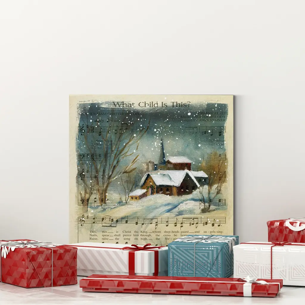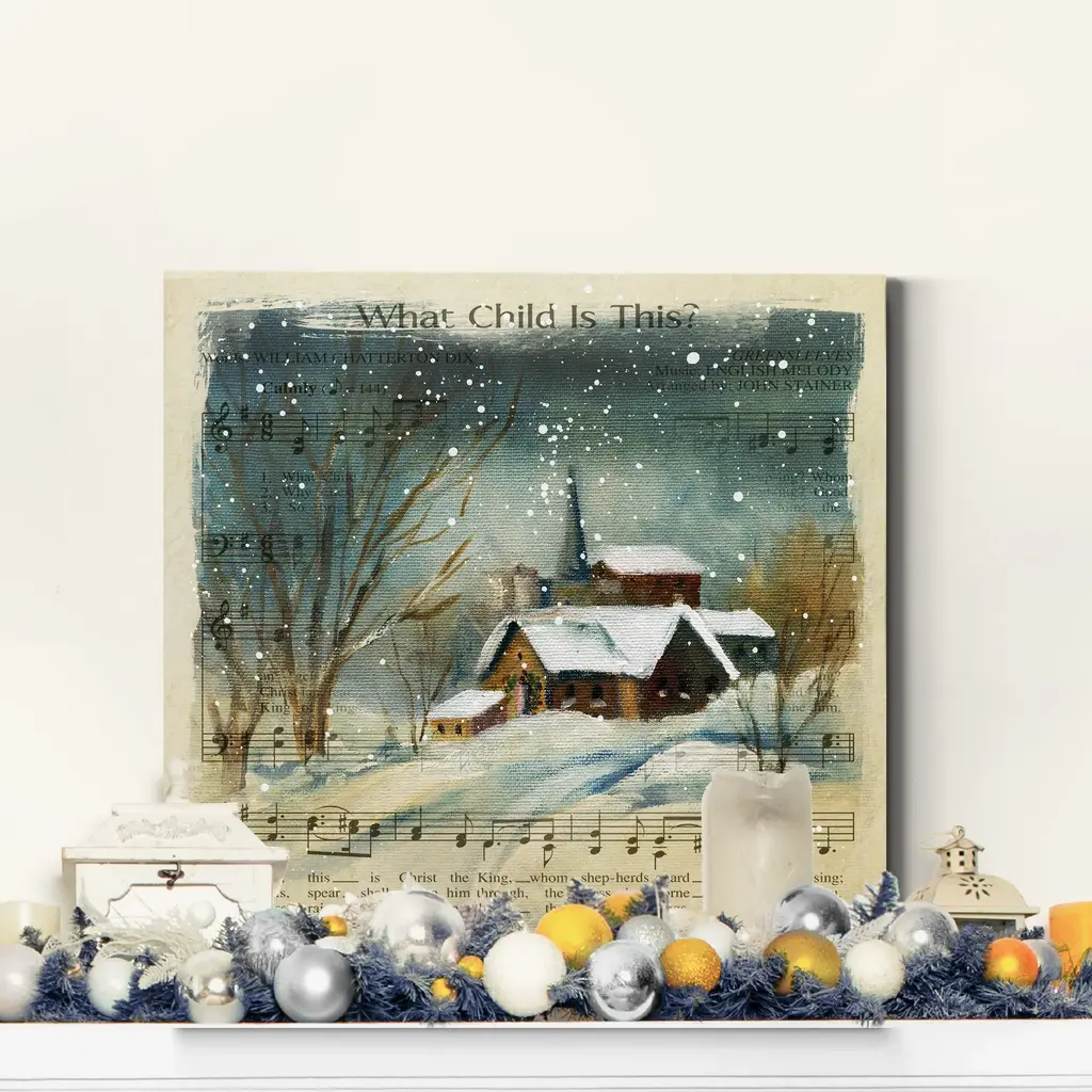 What Child is This?-Premium Gallery Wrapped Canvas - Ready to Hang A premium hand stretched gallery wrapped canvas print created to last. Featuring a beveled a solid wood stretcher bar, each piece comes ready to hand 5 SIZES AVAILABLE 10''X10'' - Overall Size 16''x16'' - Overall Size 24''x24'' - Overall Size 32''x32'' - Overall Size 40''x40'' - Overall Size Each piece is made to order. Built to Last Each piece comes ready to hang Solid wood stretcher Fade and Water resistant Made domestically