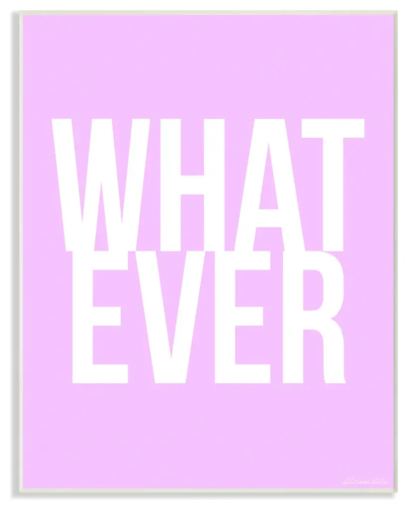 What Ever Lavender And White Typography Framed Giclee Texturized Art, 16x20