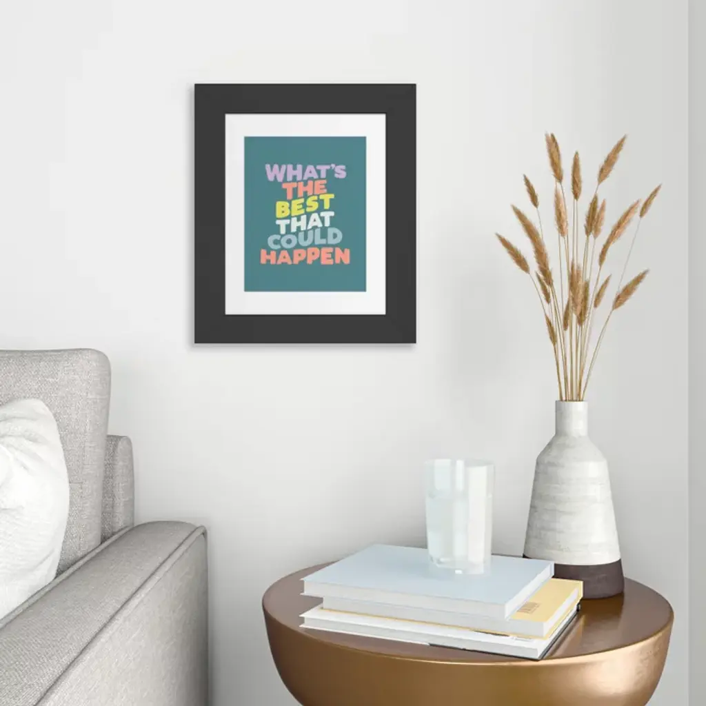 Whats The Best That Could Happen Typography Print In Green, Lilac, Orange And Yellow Art Print