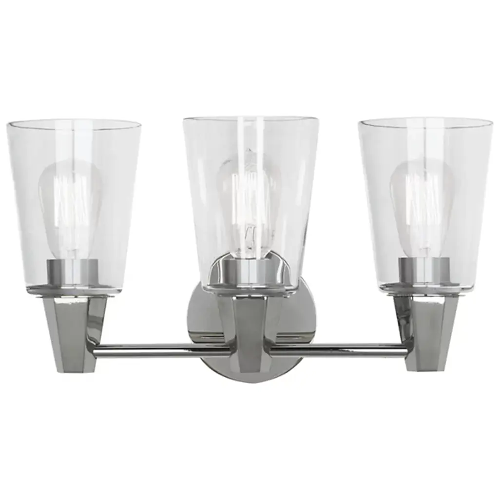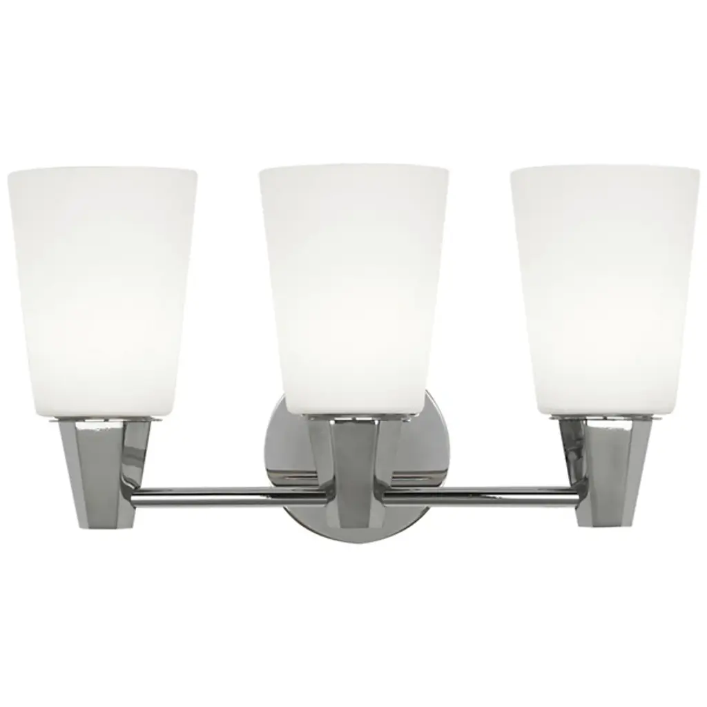Directing the eyes up the like the imposing silhouette of a 19th-century building’s pointy roof. Give the mirror an elegant crowning accent with the Wheatley Vanity Light from Robert Abbey. The piece marries architectural form with modern style. It slots atop one’s mirror with a compact circular backplate. Held with slender crossbars, tapered lamp holders produce sharp facets that recall architectural lines. The glass shades also flare out gently. These shades present a diffused light to the eyes while pointing a cast glow on the wall.