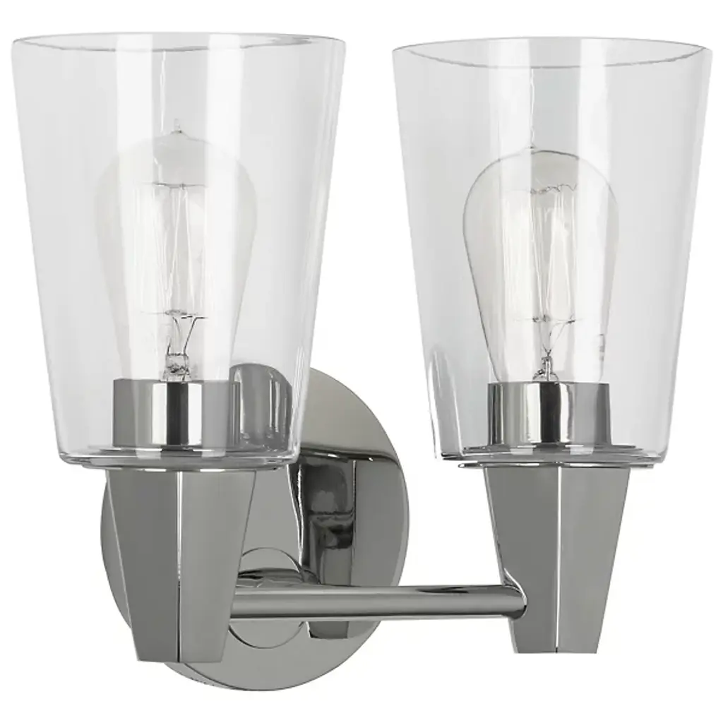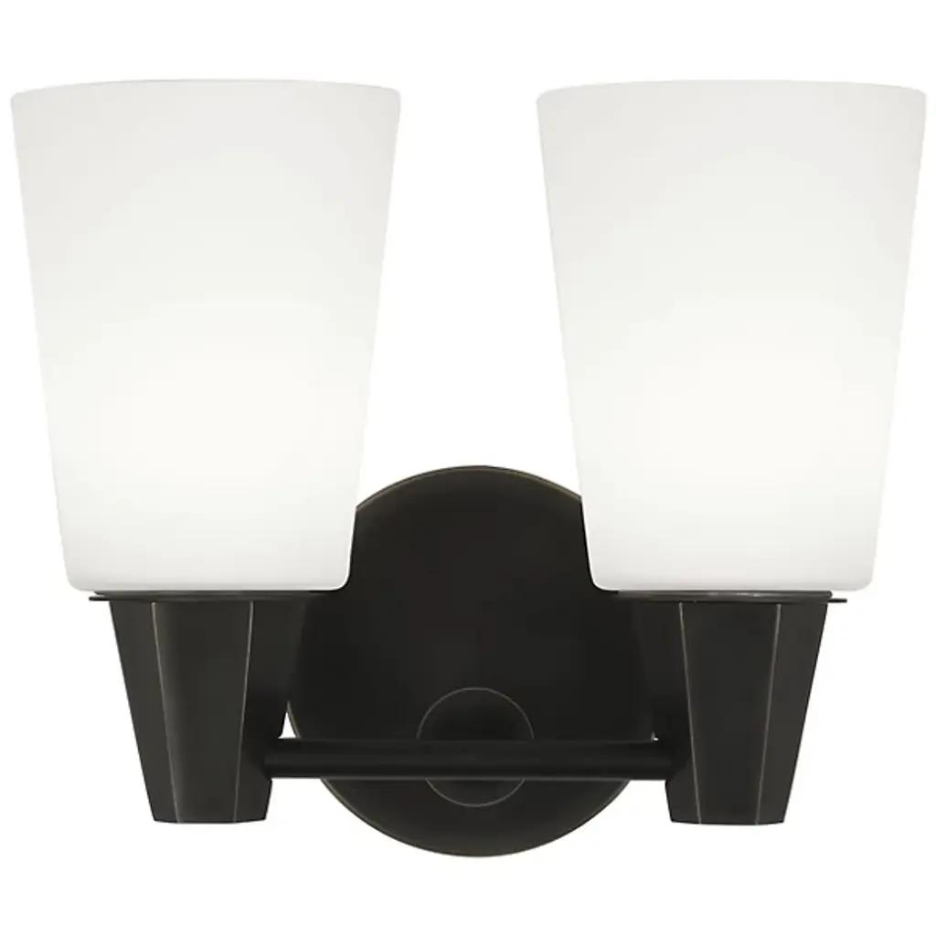 Directing the eyes up the like the imposing silhouette of a 19th-century building’s pointy roof. Give the mirror an elegant crowning accent with the Wheatley Vanity Light from Robert Abbey. The piece marries architectural form with modern style. It slots atop one’s mirror with a compact circular backplate. Held with slender crossbars, tapered lamp holders produce sharp facets that recall architectural lines. The glass shades also flare out gently. These shades present a diffused light to the eyes while pointing a cast glow on the wall.