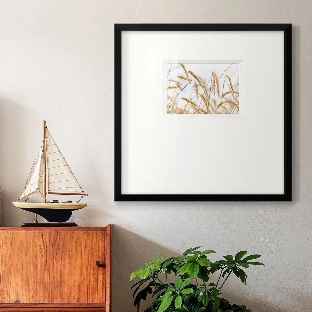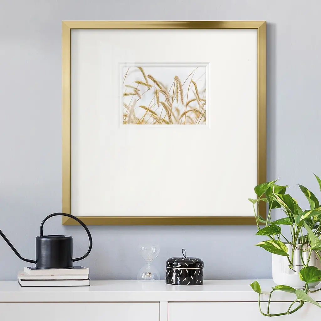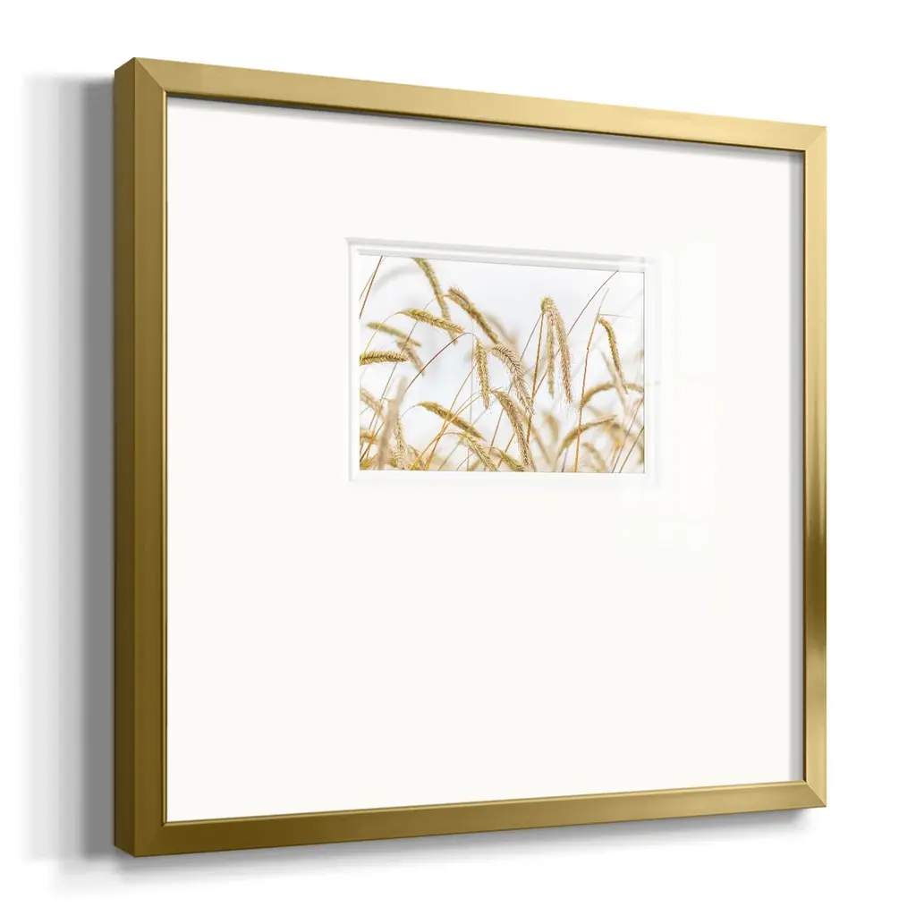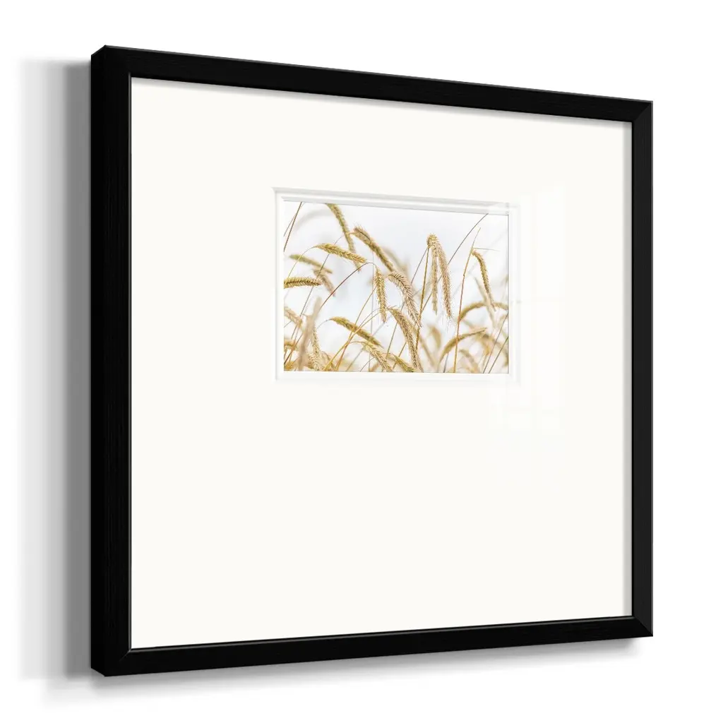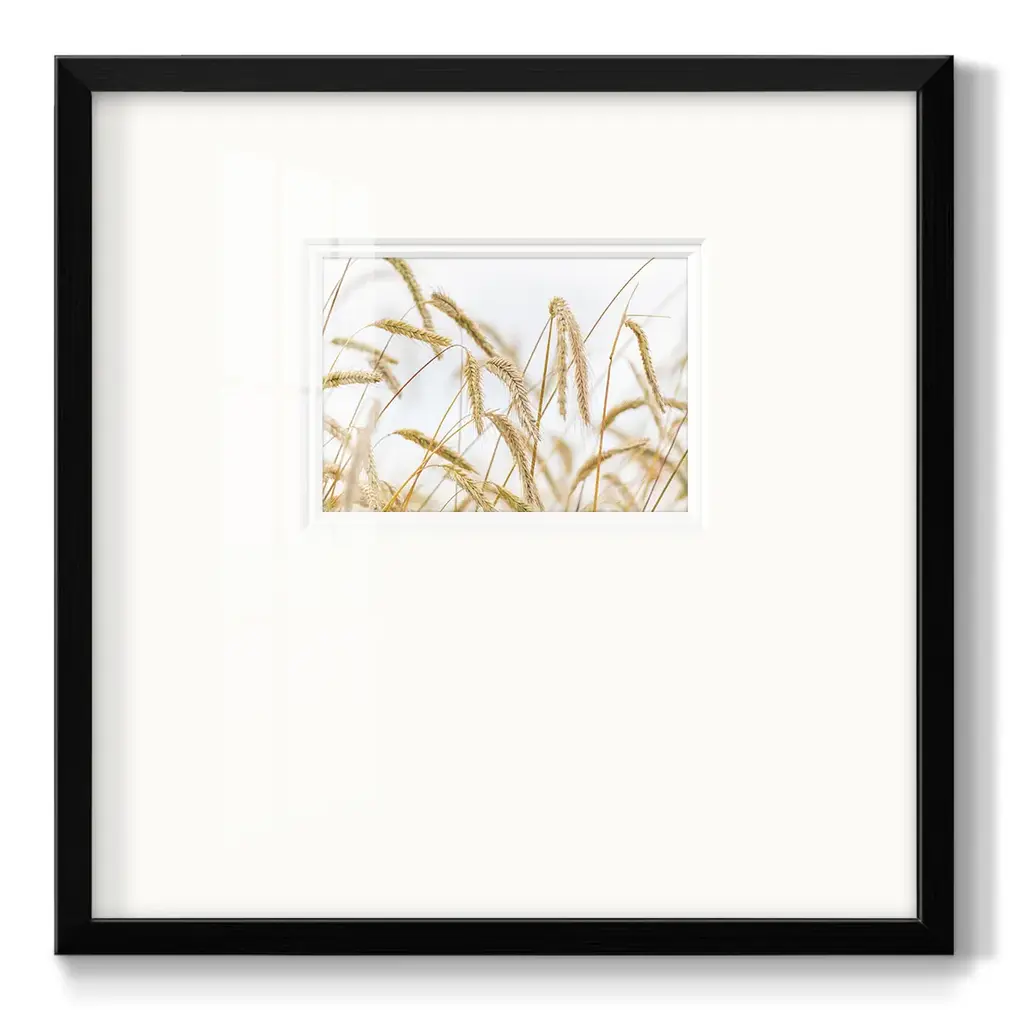 WheatPremium Framed Print A framed cold pressed paper print featuring superior double matting and quality frame. 2 SIZES AVAILABLE 16''X16''' - Overall Size 20''X20''' - Overall Size Each piece is made to order. Each piece comes with hanging hardware. Made in the USA Ready to Hang Giclee Paper Print Plexiglass Beveled Matt Board Double Matte Board