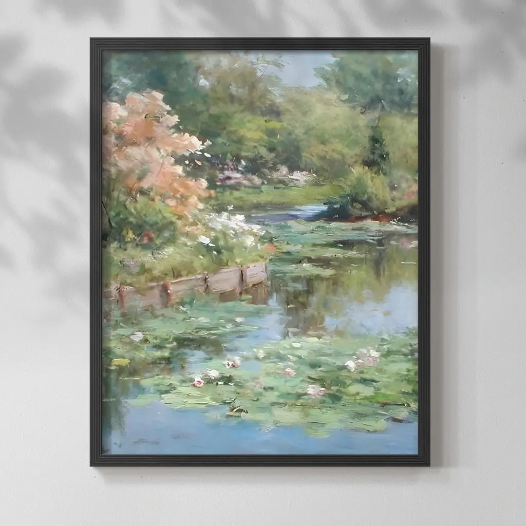 I have been mesmerized by Claude Monet's paintings of his garden in Giverny all my life. I created Where Is Monet as a tribute to this talented impressionist painter. Lots of layers paint and gesso where added to give the garden and water pond a depth and life all their own.