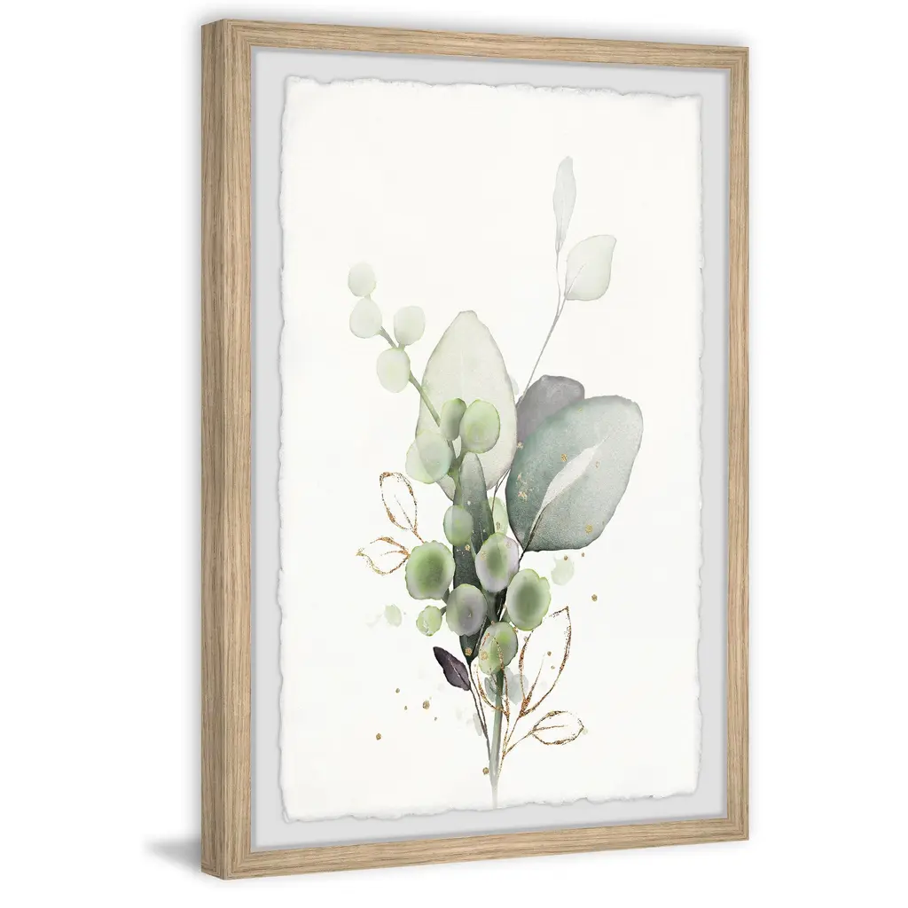 This serene watercolor painting print features a dainty green botanical arrangement. Proudly printed in the USA, this piece is printed on high quality archive paper and professionally hand-framed. With wall-mounting hooks included, this artful accent is ready to hang up as soon as it reaches your front door. • Top quality Giclee print on high resolution Archive Paper • Hand cut deckled edges • High quality durable non-warping frame • Finished under shatter resistant plexiglass • Arrives ready to hang • Includes a certificate of authenticity • Printed in the USA