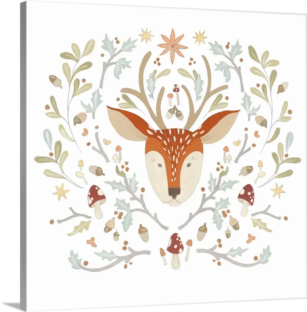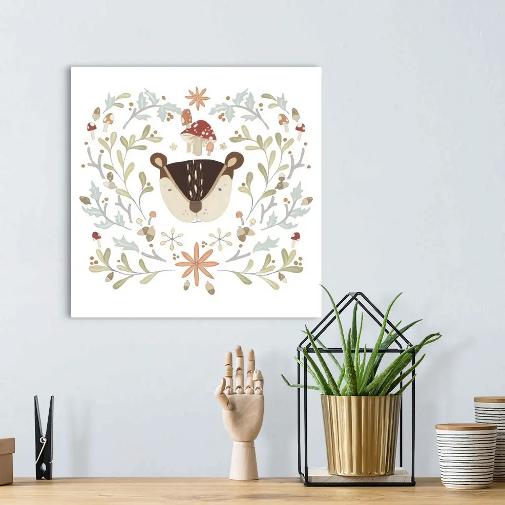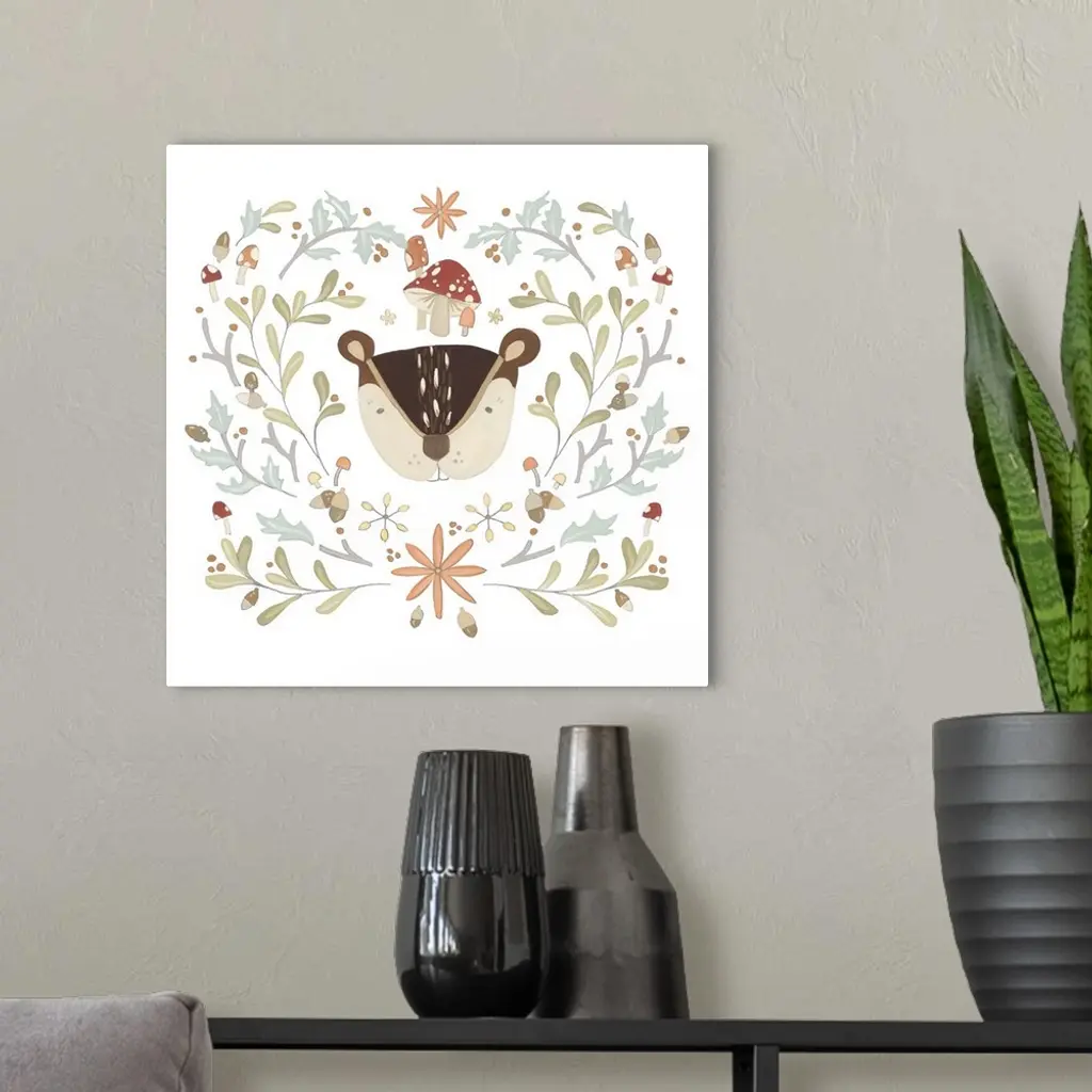 Whimsical children's artwork of woodland creatures and floral woodland elements.