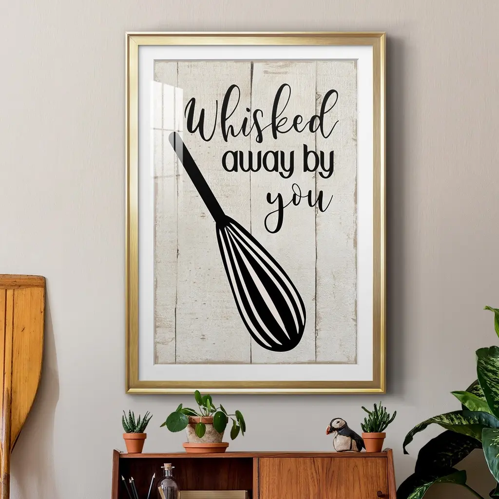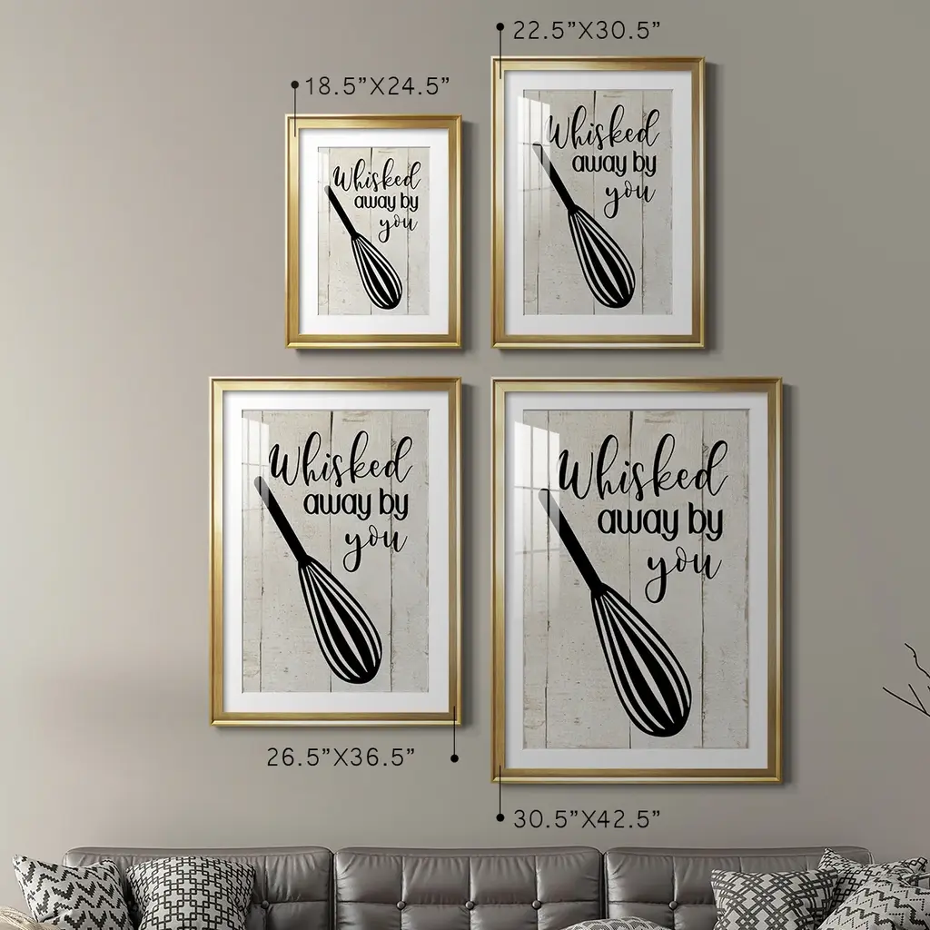 Whisked Away Premium Framed Print - Ready to Hang A Premium Framed Print created to last. Framed in distressed wood and available in an array of sizes and colors Featuring a beveled a solid wood stretcher bar, each piece comes ready to hand 4 SIZES AVAILABLE 30.5''X42.5'' - Overall Size 26.5'X36.5'' - Overall Size 22.5''x30.5'' - Overall Size 18.5''x24.5'' - Overall Size Each piece is made to order. Each piece comes with hanging hardware. Made in the USA Ready to Hang Giclee Paper Print Acrylic Glass Beveled Matt Board