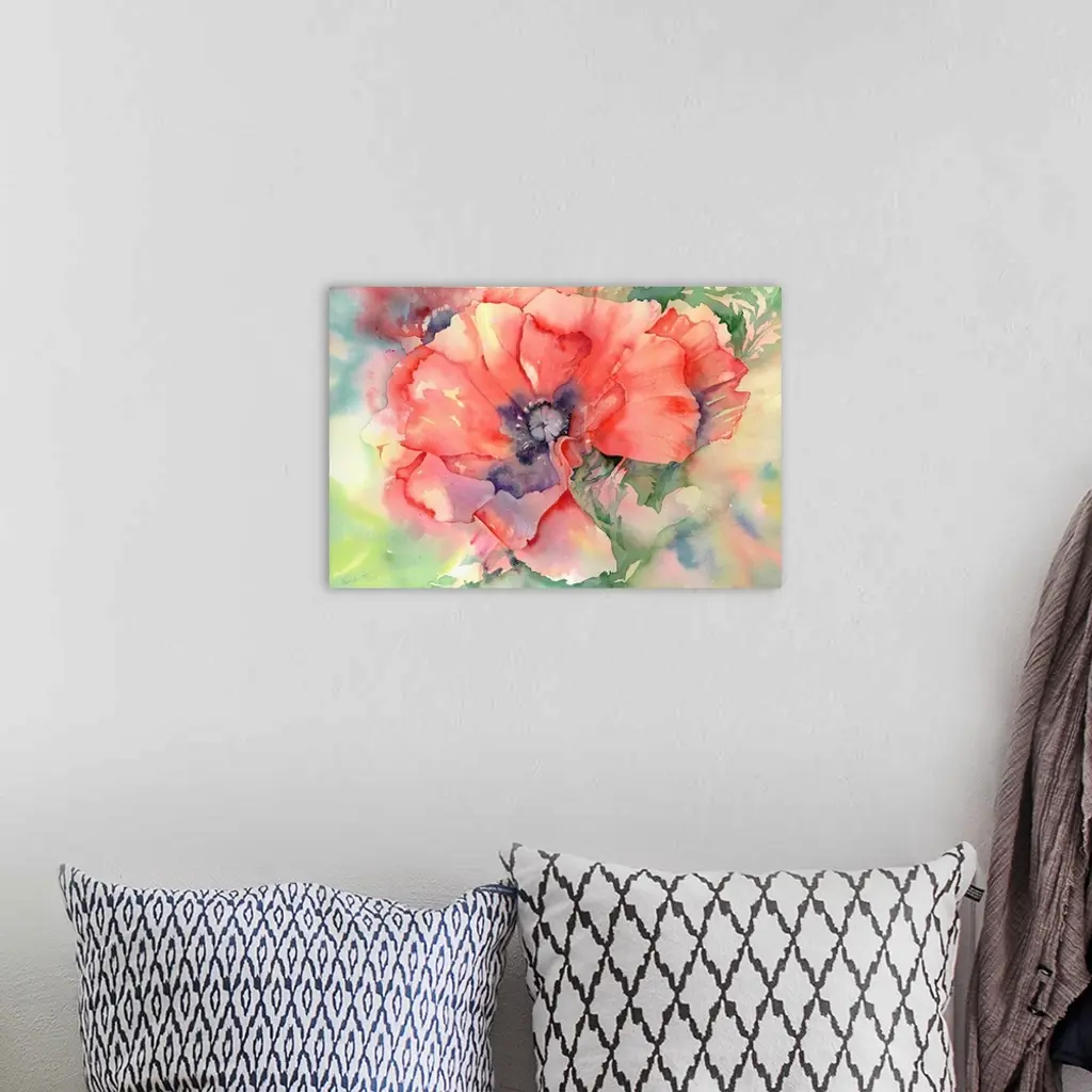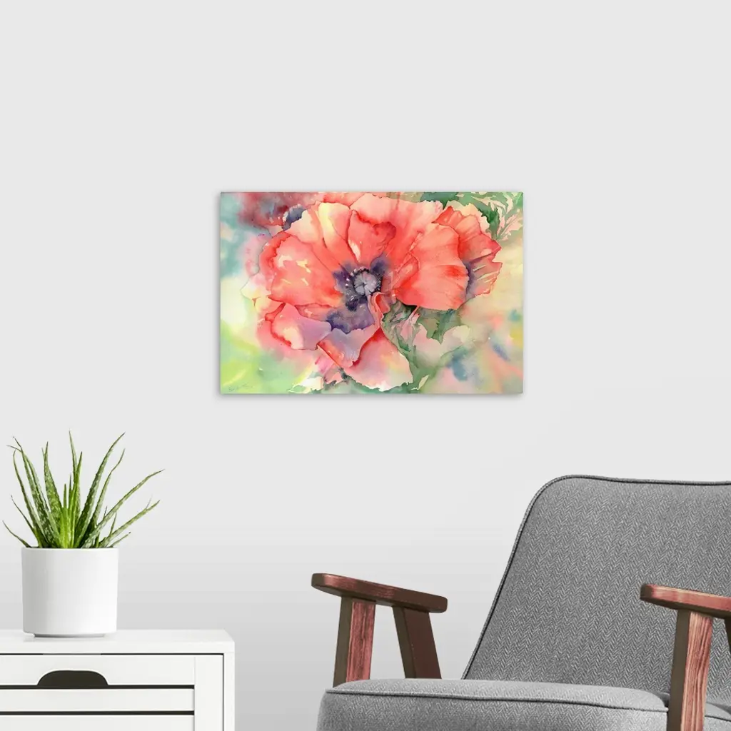 Contemporary watercolor painting of vibrant colorful flowers.