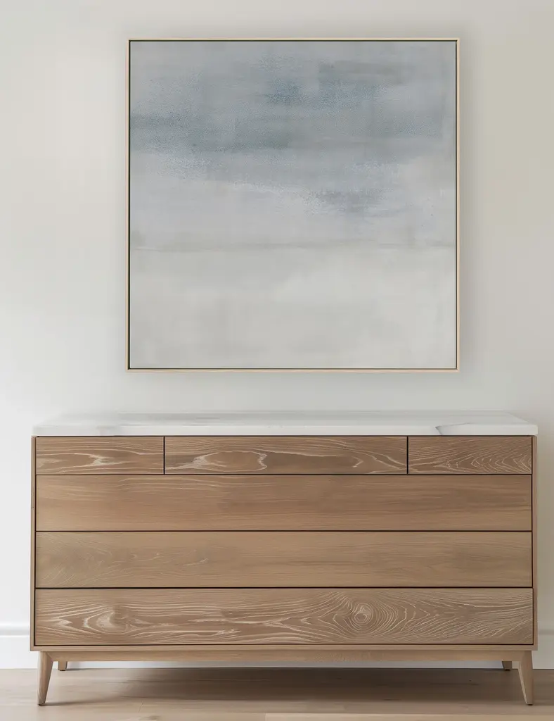 This abstract artwork by Carol Benson-Cobb captures a serene, atmospheric scene with its calming palette of grays and blues. We love this piece as an elevating addition to a refined wall art curation.
