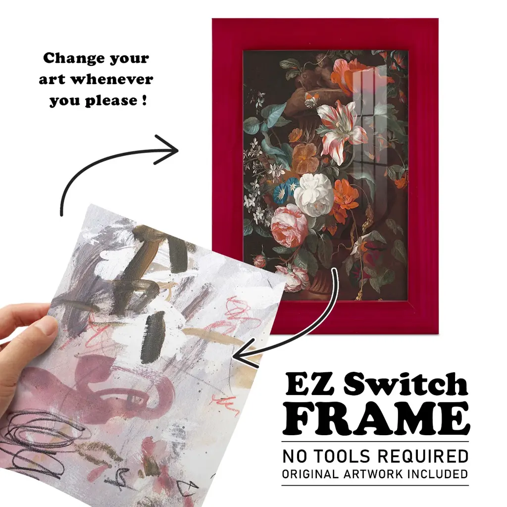 Whispering Dawn III -EZ SWITCH Framed Print w/glass-Cherry Red A delightful, framed print. Featuring a solid wood frame with real wood glass. This premium print is giclee quality. In addition, every frame features a removable back and table top stand. This allows you to change your art in the future or to just stand the art on a table for a new look. We are sure you'll enjoy our new series of EZ SWITCH Framed Art. Solid Wood Frame Real Glass Removable / Replaceable Art Built in Tabletop Stand Sizes range from 4x6 up to 12x15 - buy just one or pair them up as sets as you see fit.